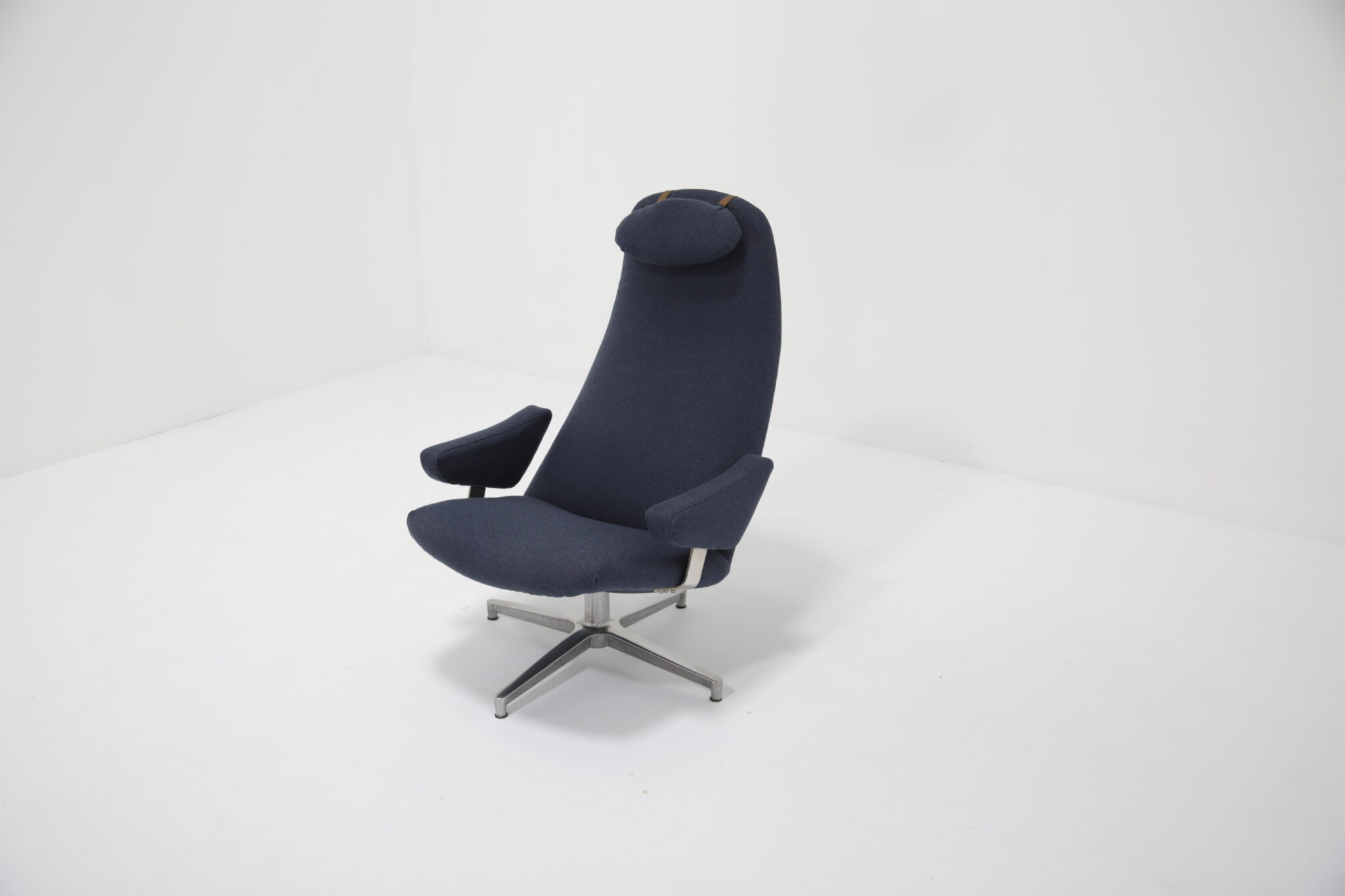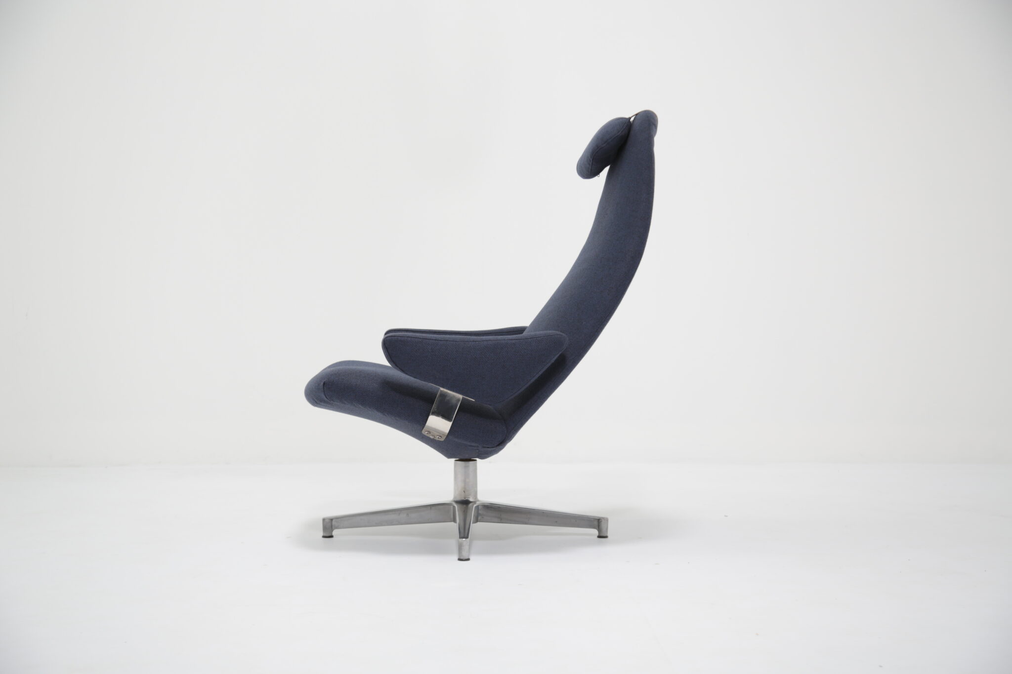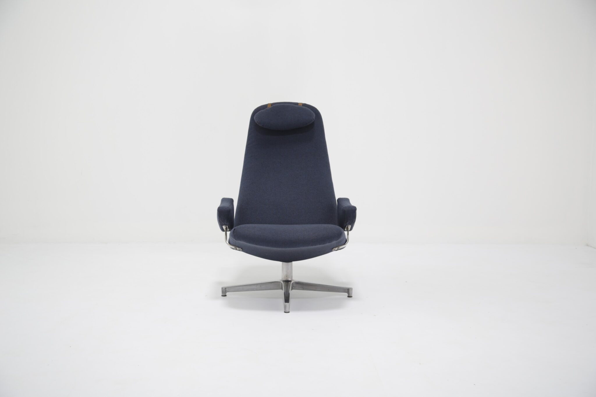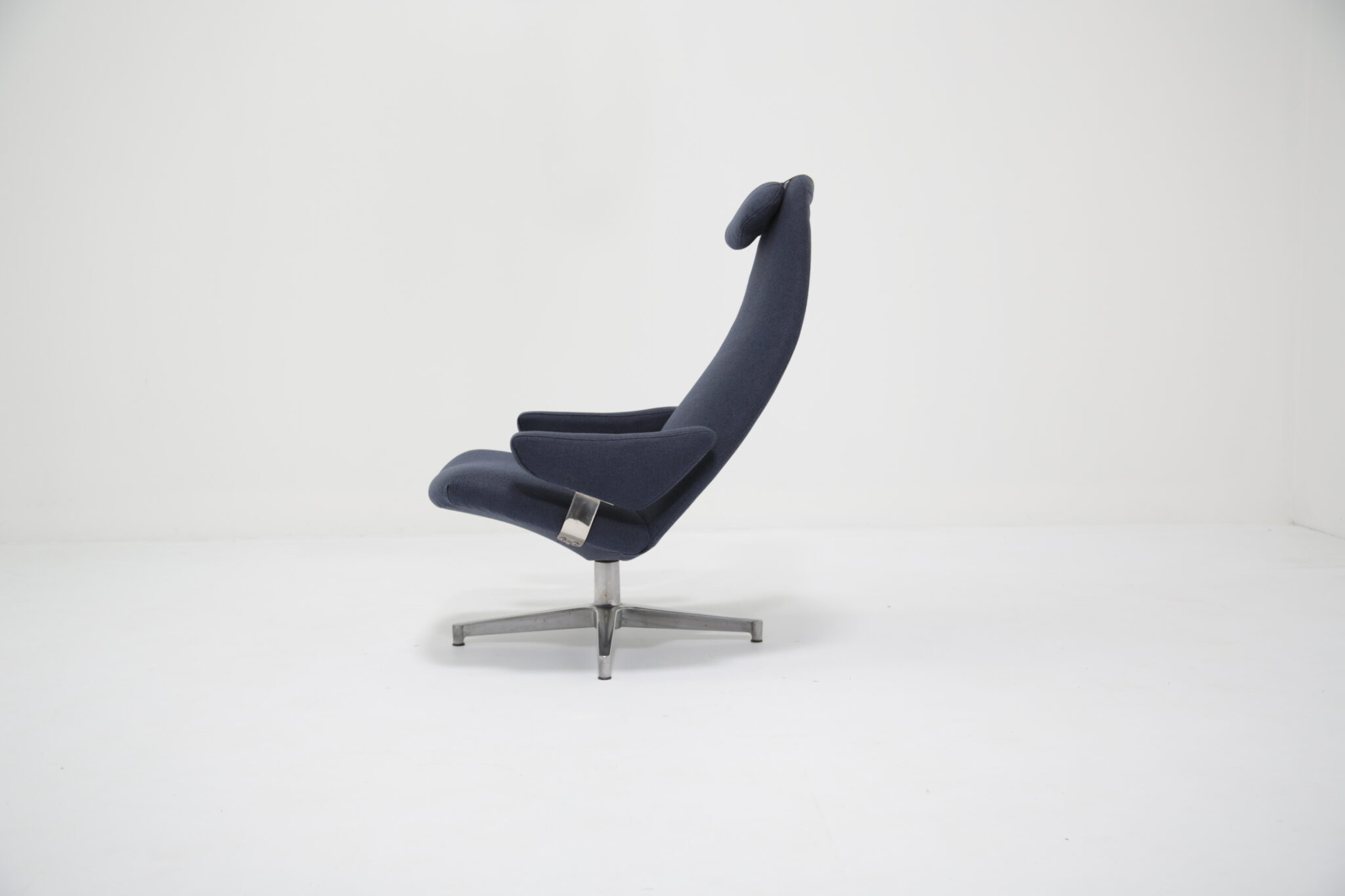 Get comfortable in this lounge chair designed by the renowned Swedish designer Alf Svensson for “Dux of Sweden”. The chair features a sleek, organic form with smooth flowing lines that gives it a sculptural quality. The chair is true to its name “Contourette”, the chair is designed to contour to the body, providing ergonomic comfort and support. The chair sits on a four-star aluminum base that is sturdy and durable. This chair is perfect for someone who is looking to relax after a days work or use it as a very comfortable reading chair.