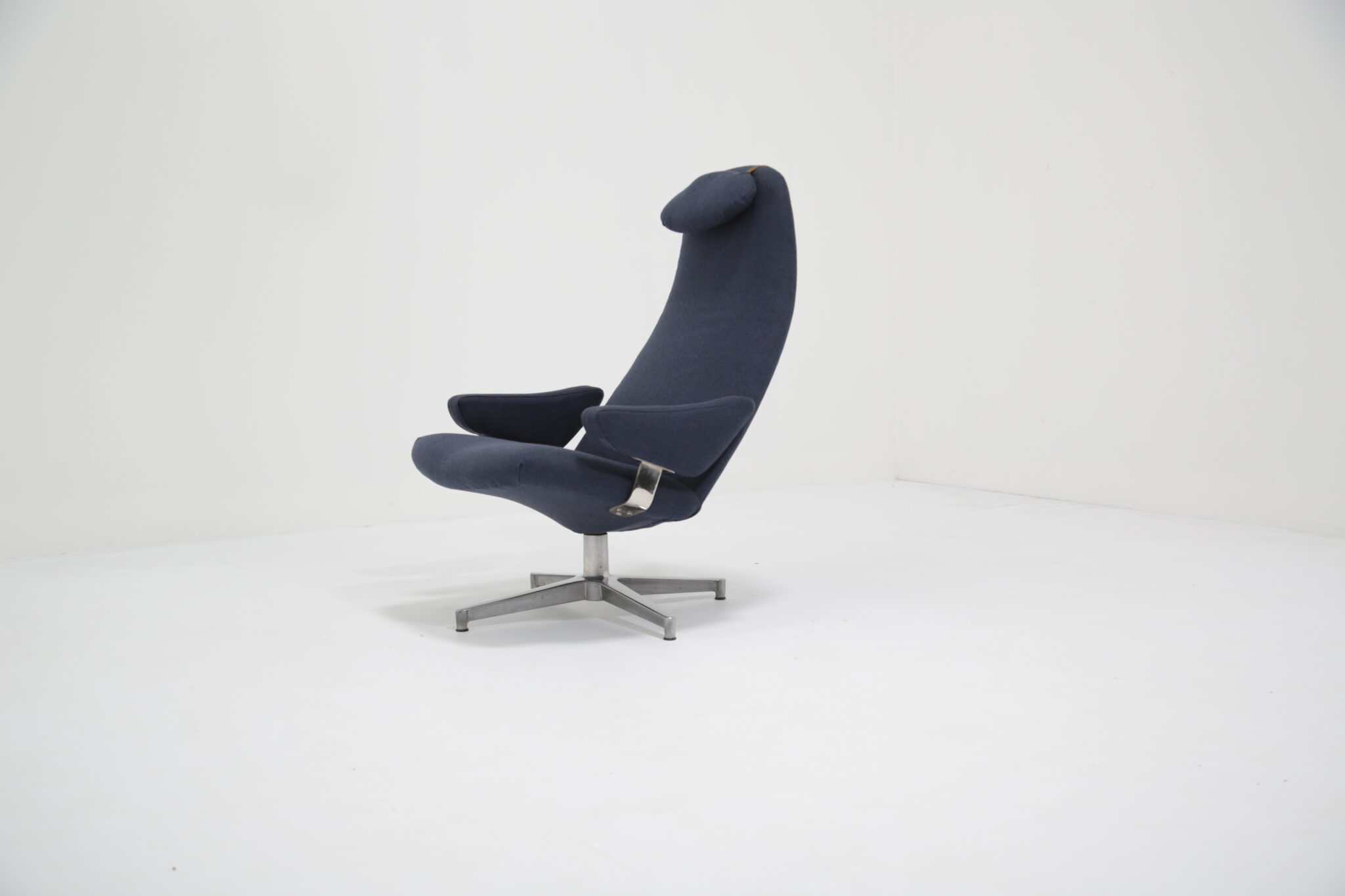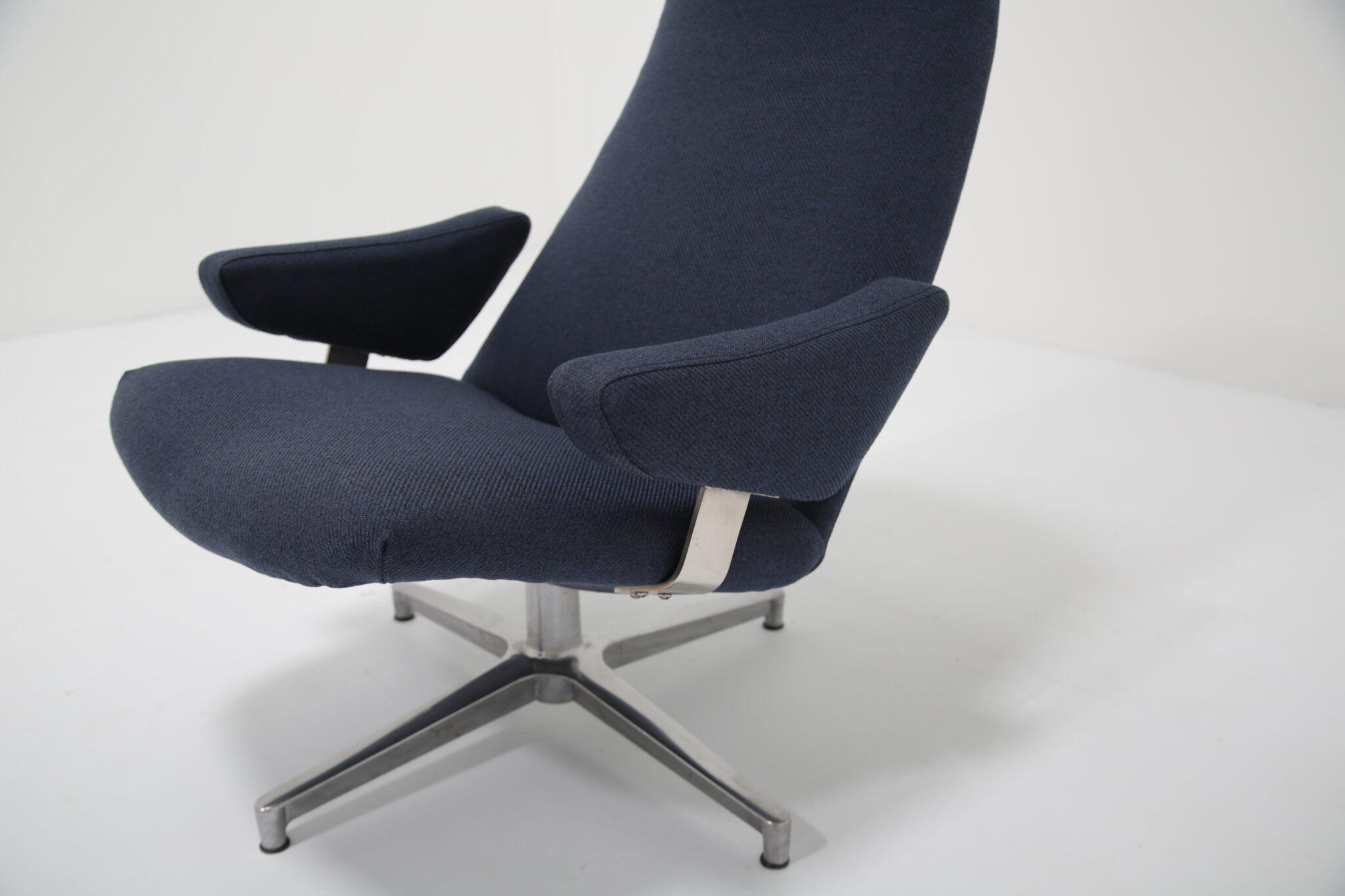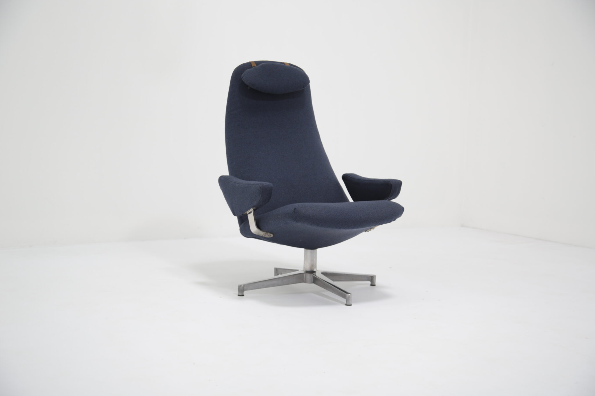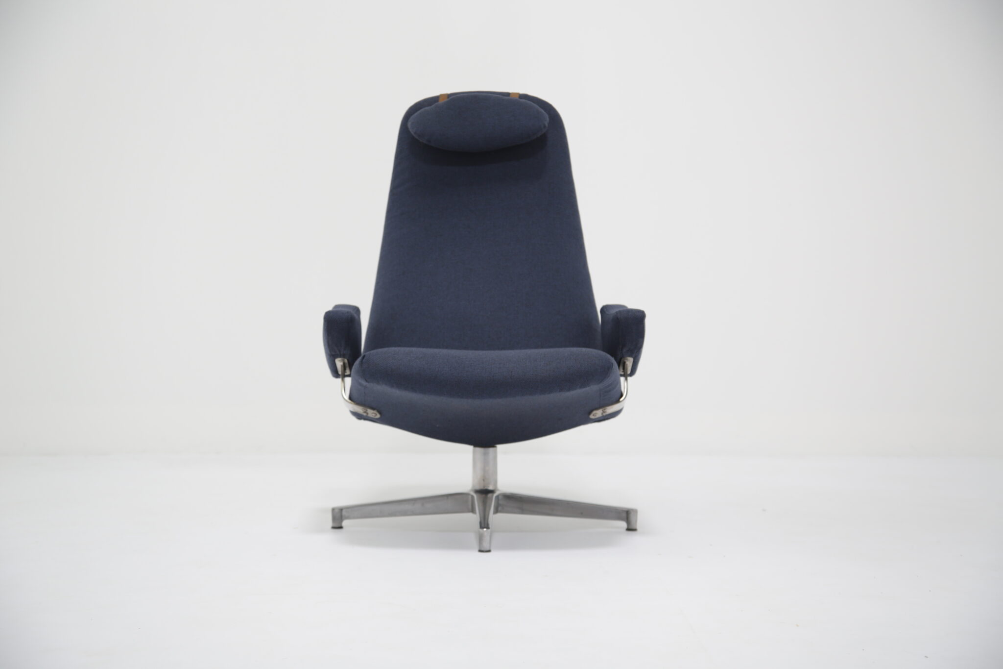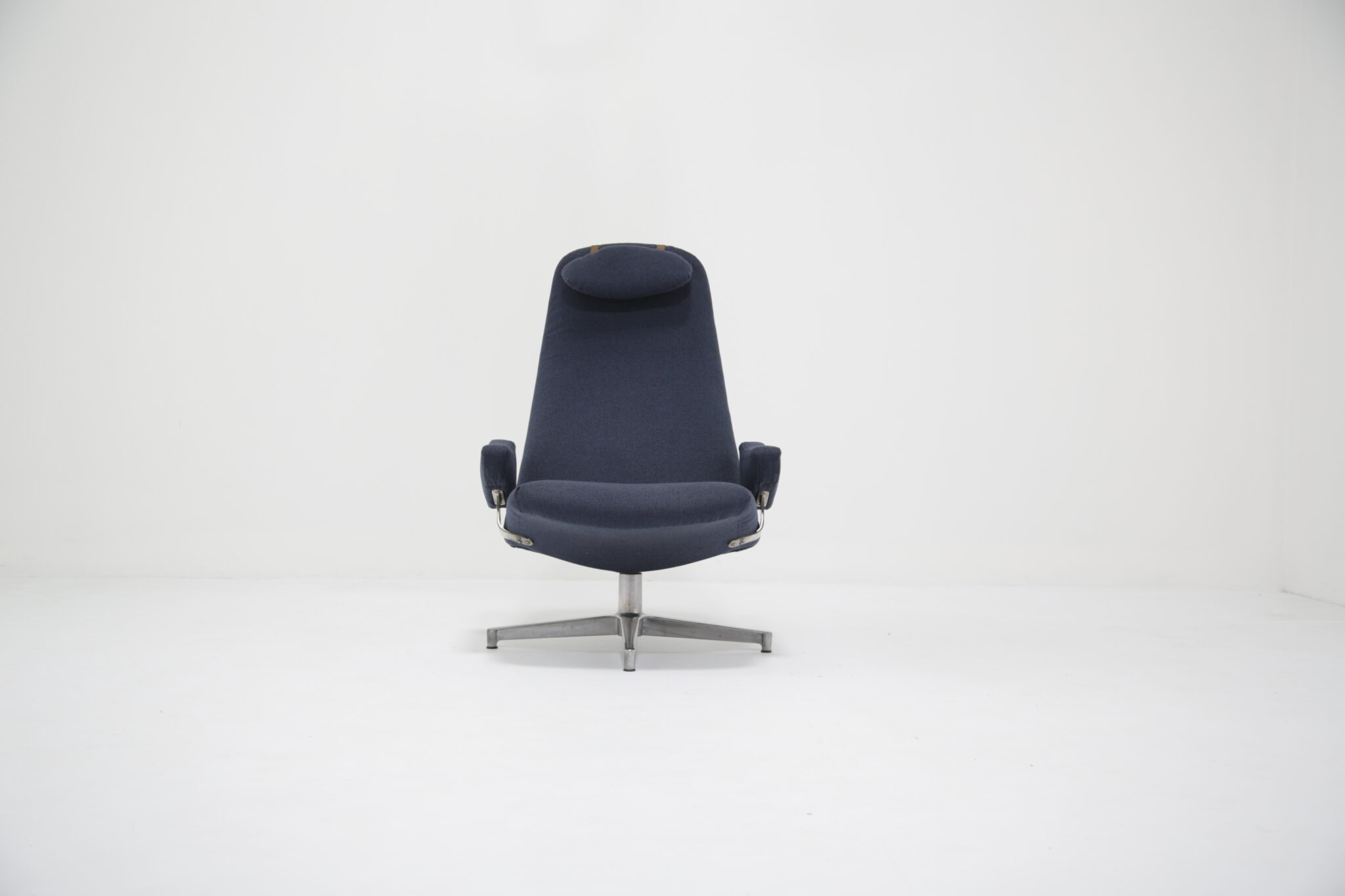 Get comfortable in this lounge chair designed by the renowned Swedish designer Alf Svensson for “Dux of Sweden”. The chair features a sleek, organic form with smooth flowing lines that gives it a sculptural quality. The chair is true to its name “Contourette”, the chair is designed to contour to the body, providing ergonomic comfort and support. The chair sits on a four-star aluminum base that is sturdy and durable. This chair is perfect for someone who is looking to relax after a days work or use it as a very comfortable reading chair.