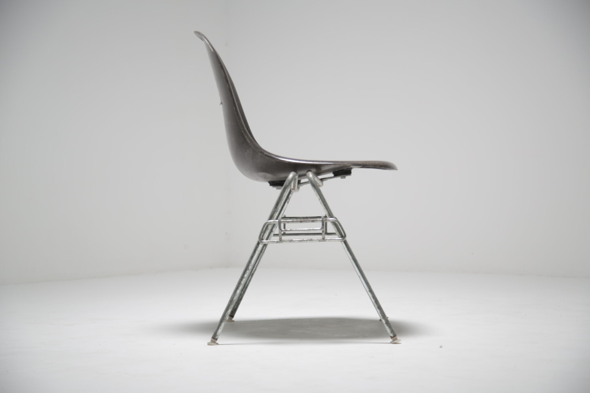 Vintage Grey Stacking Chair – Style, functionality and innovation, Charles and Ray Eames where certainly ahead of their time when it came to seating and is still iconic today. DSS, which stands for “dining side stacking,” encapsulates the essence of versatile seating. Its sleek chrome frame base combined with a seat in fiberglass not only adds a touch of modern elegance but also provides robust support that ensures lasting durability.