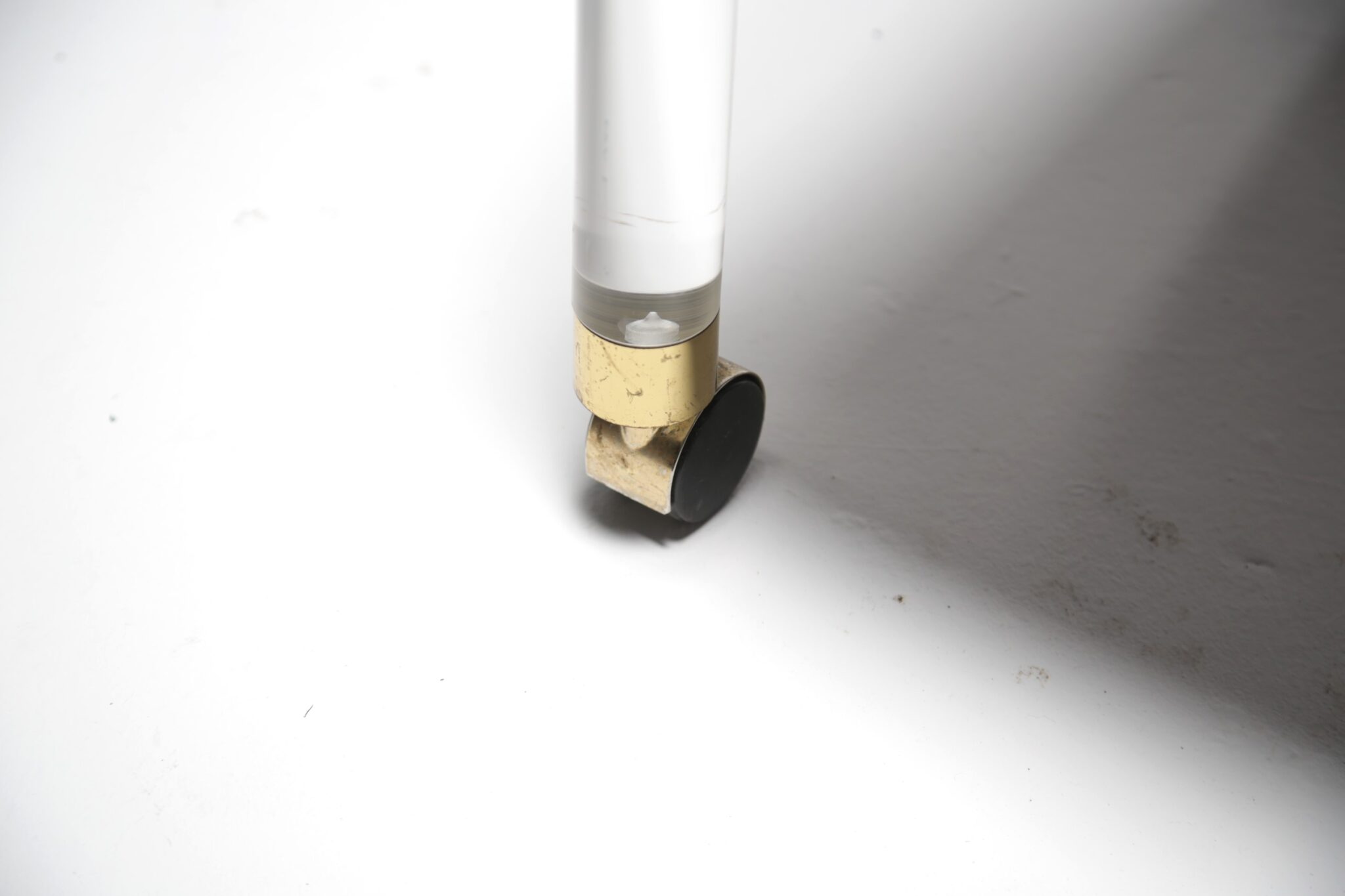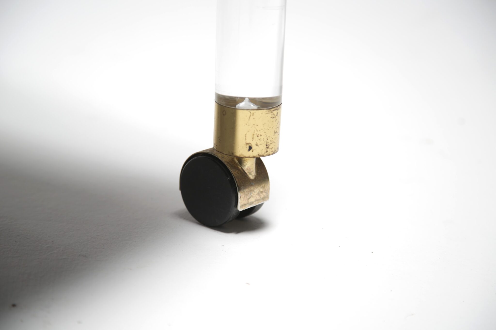 Vintage Lucite Velvet Armchair – Presented here is another beautiful armchair in lucite, upholstered in a purple luxurious velvet on a solid tubular lucite frame and gold colored wheels. It would work perfect as a bedroom chair or for your vanity table. It provides good support for the back and is comfortable to sit in.