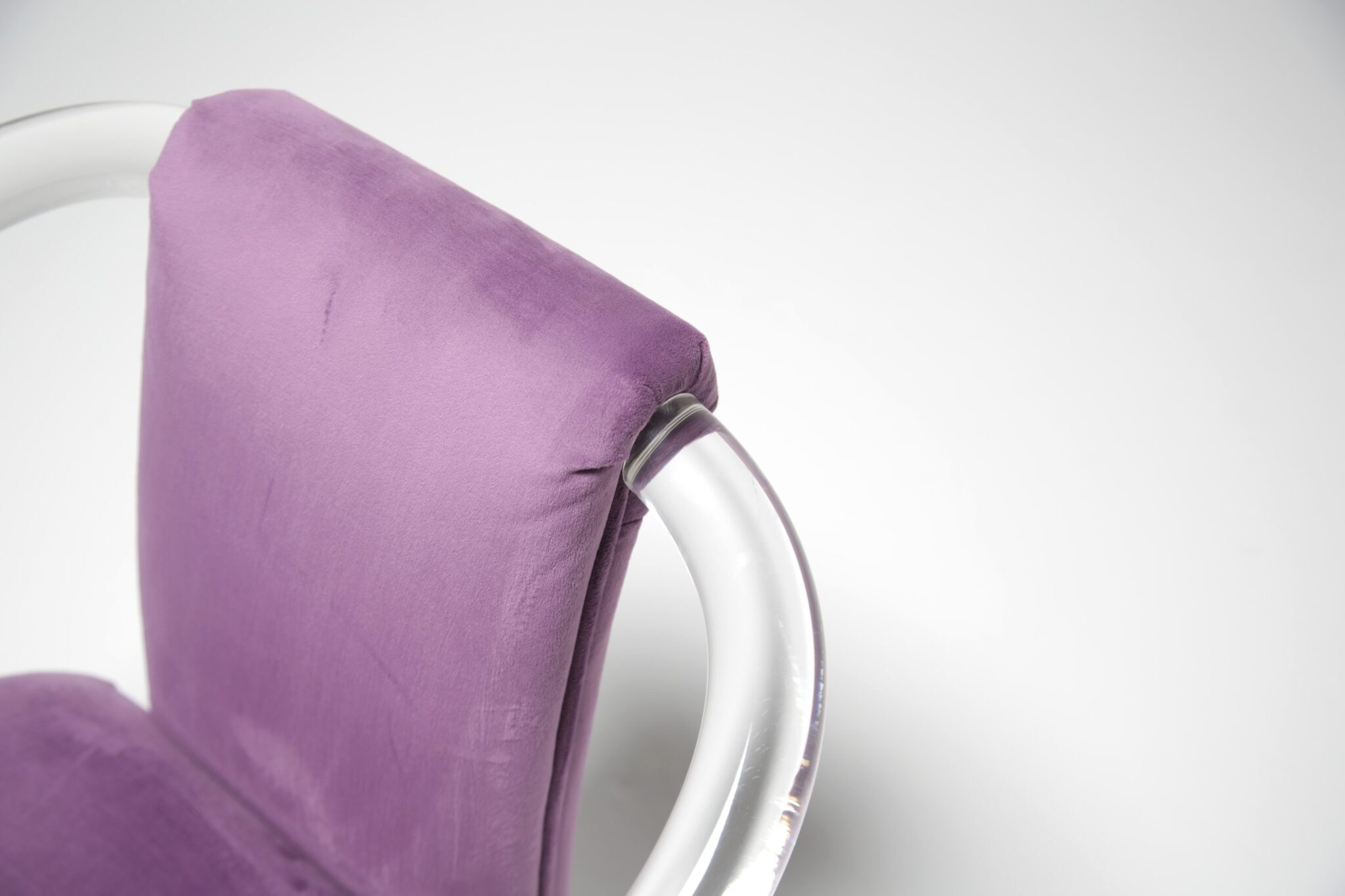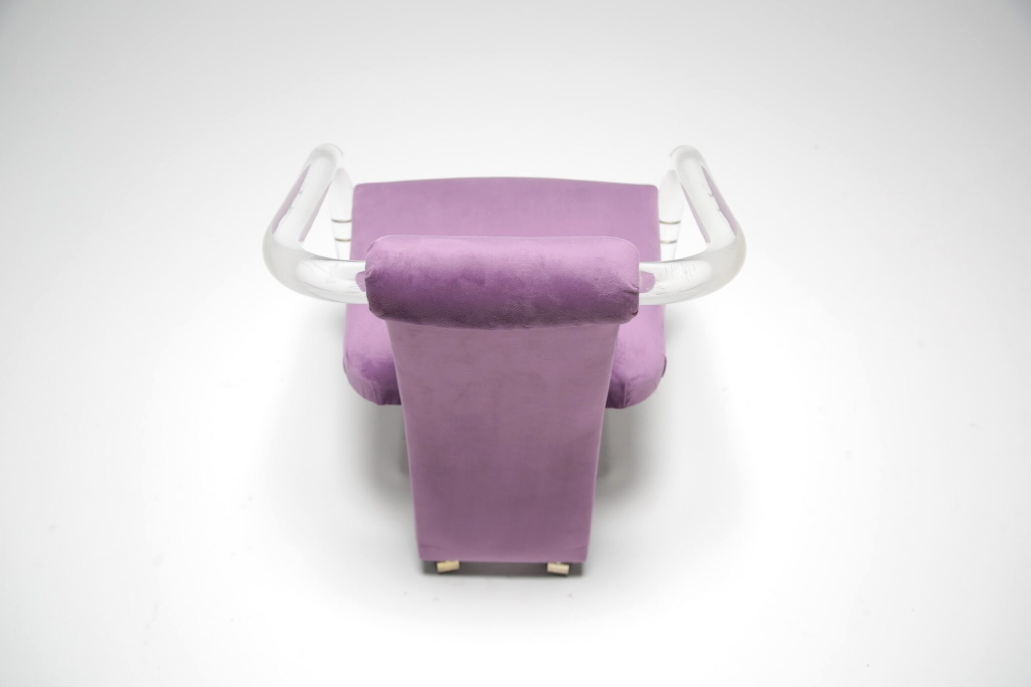 Vintage Lucite and Purple Velvet Armchair by Charles Hollis Jones 1