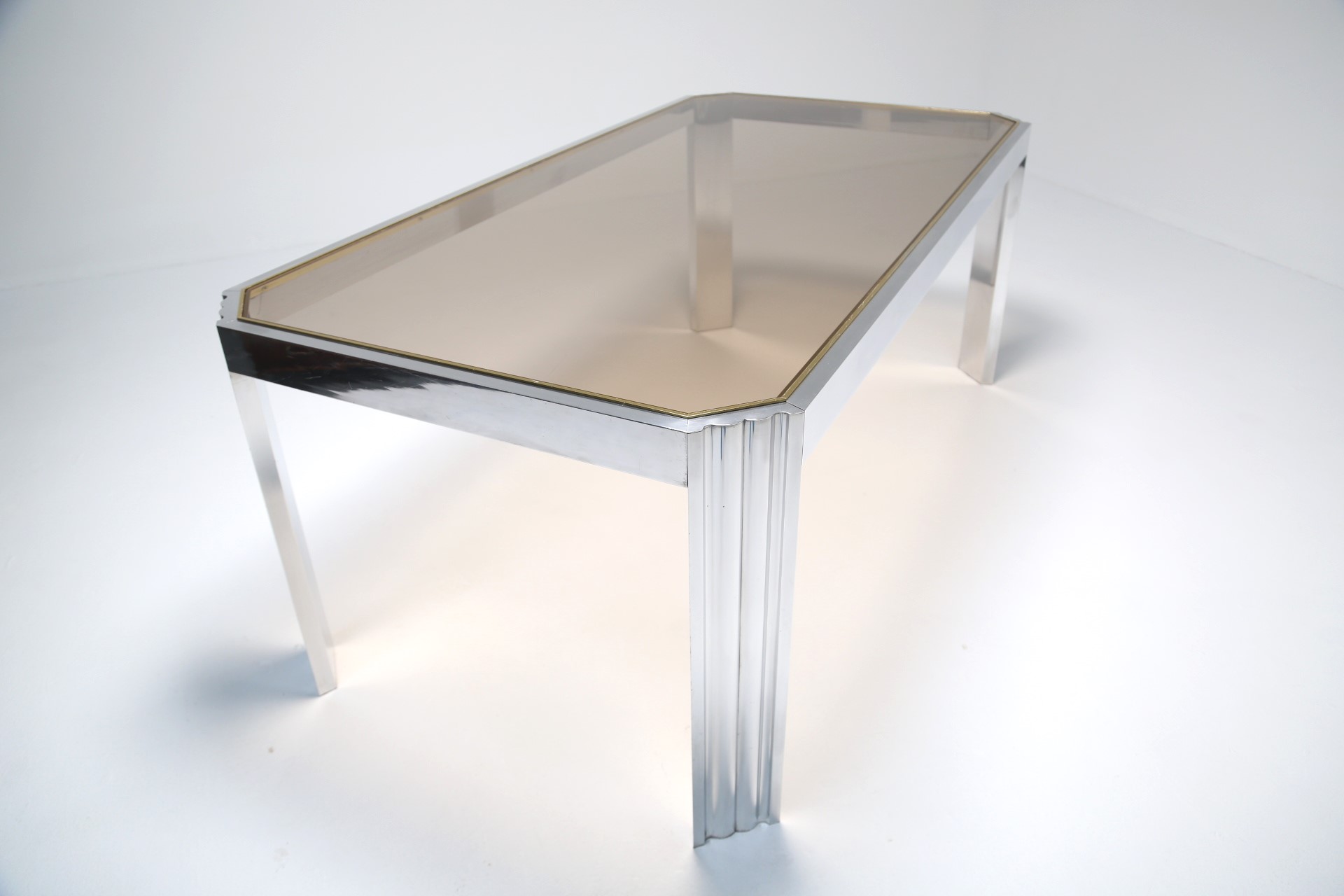The fluted chrome legs give this table a dramatic Deco-inspired twist, setting it apart from other minimalist designs of the same period. The combination of smoked glass and polished chrome creates a luxurious yet understated look. It’s a fantastic fusion of vintage glamour and mid-century modern sleekness—ideal for collectors and stylists alike.