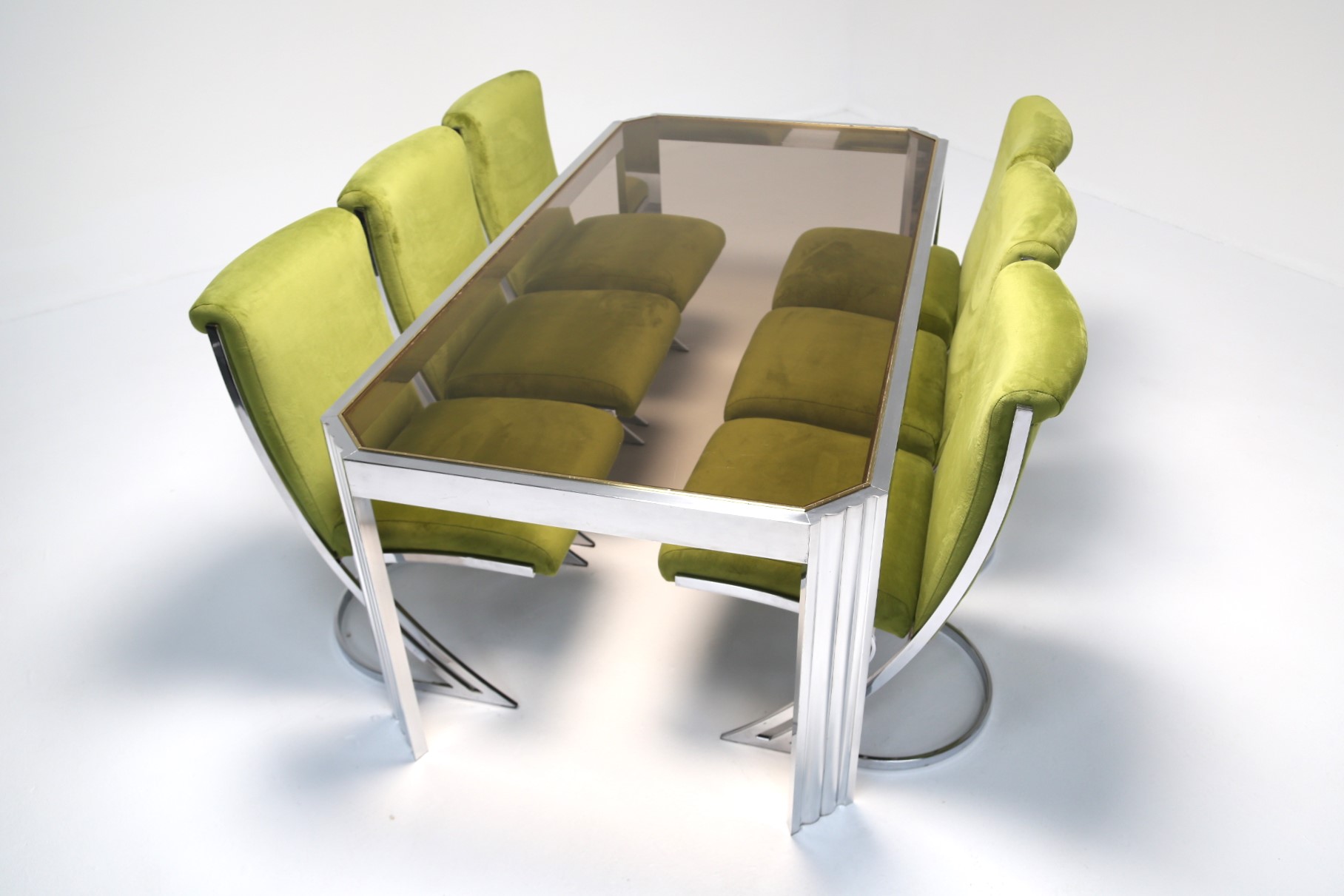 In excellent vintage condition with only minor signs of age and use. The chrome is bright with light patina in areas, typical of its age, but free from rust or deep marks. The smoked glass top is clear and intact, with no cracks or chips. A well-preserved example of 1970s design.