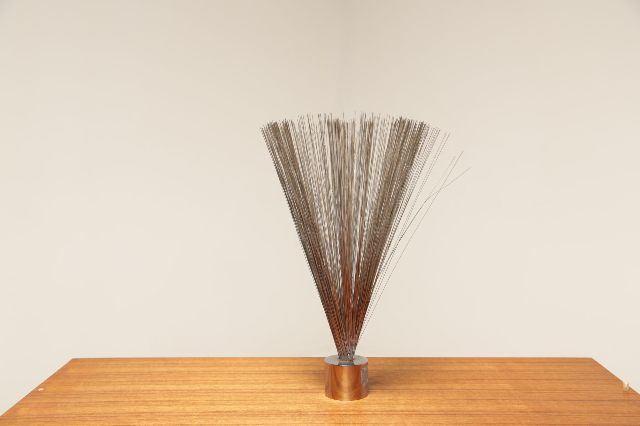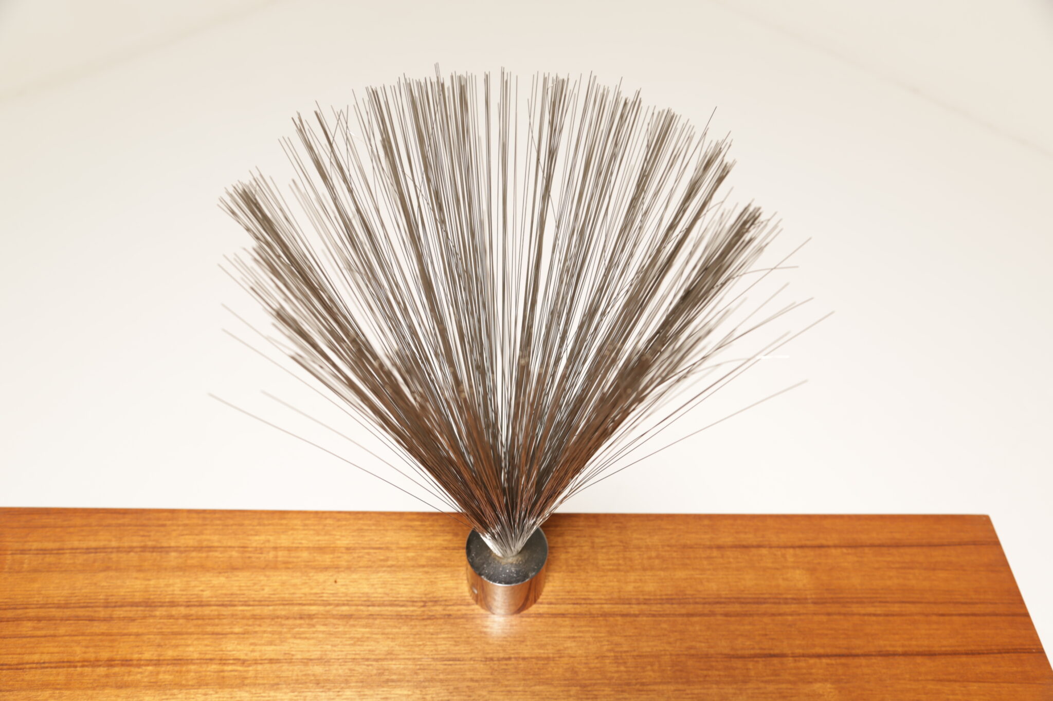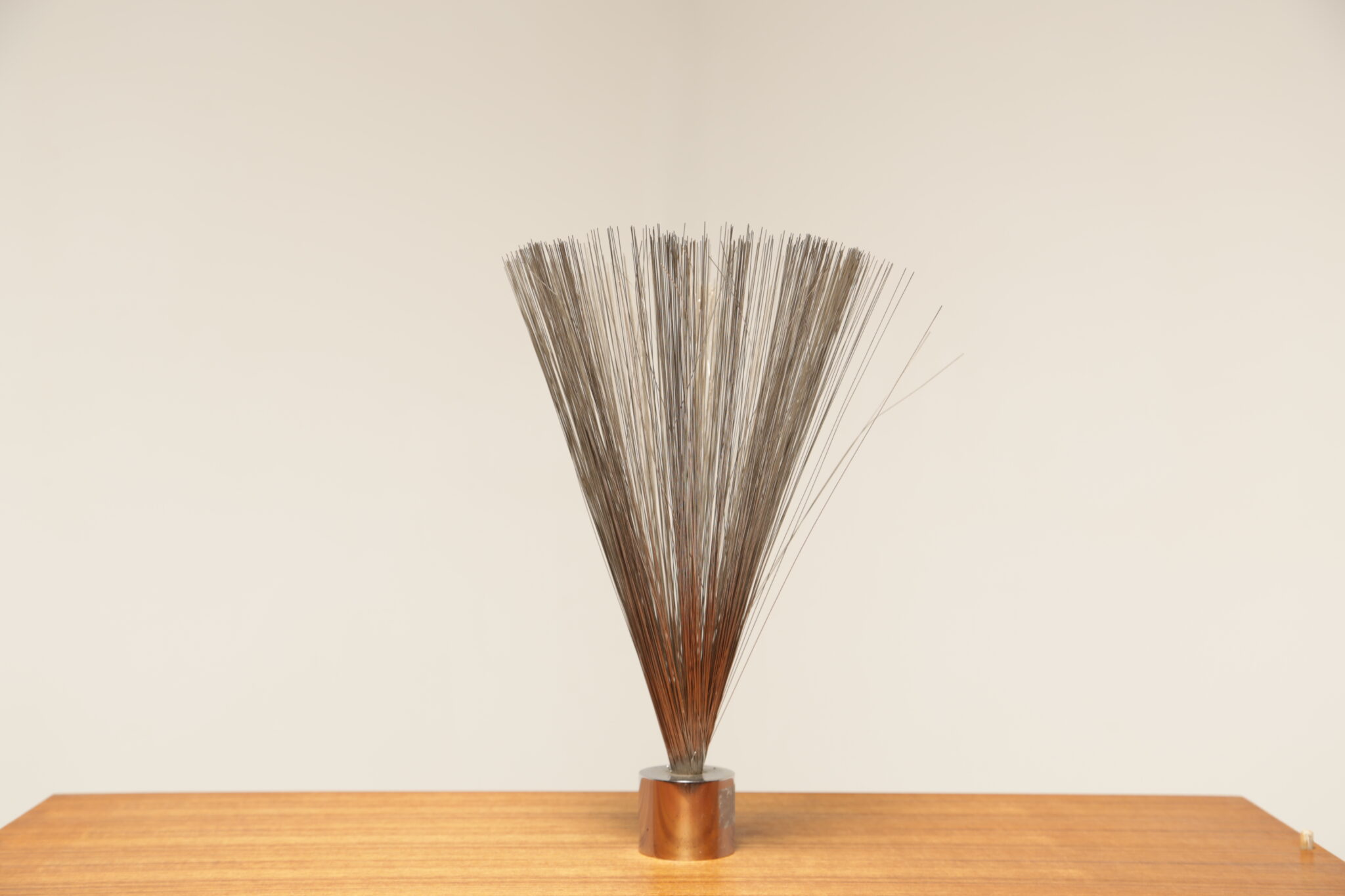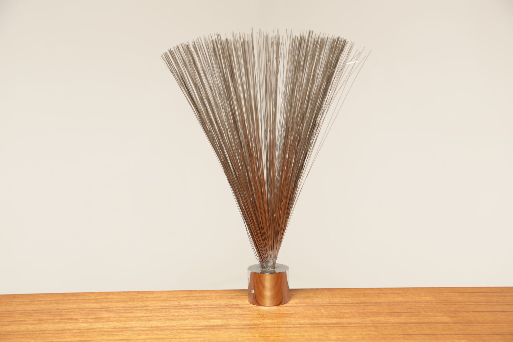 Introducing an exquisite work of art that captures the essence of mid-century elegance and innovation – the Dave Grossman Vintage Abstract Spray Sculpture. Inspired by the iconic creations of artists like Harry and Val Bertoia, this sculpture pays homage to the era’s fascination with kinetic art and the play of movement within space.
