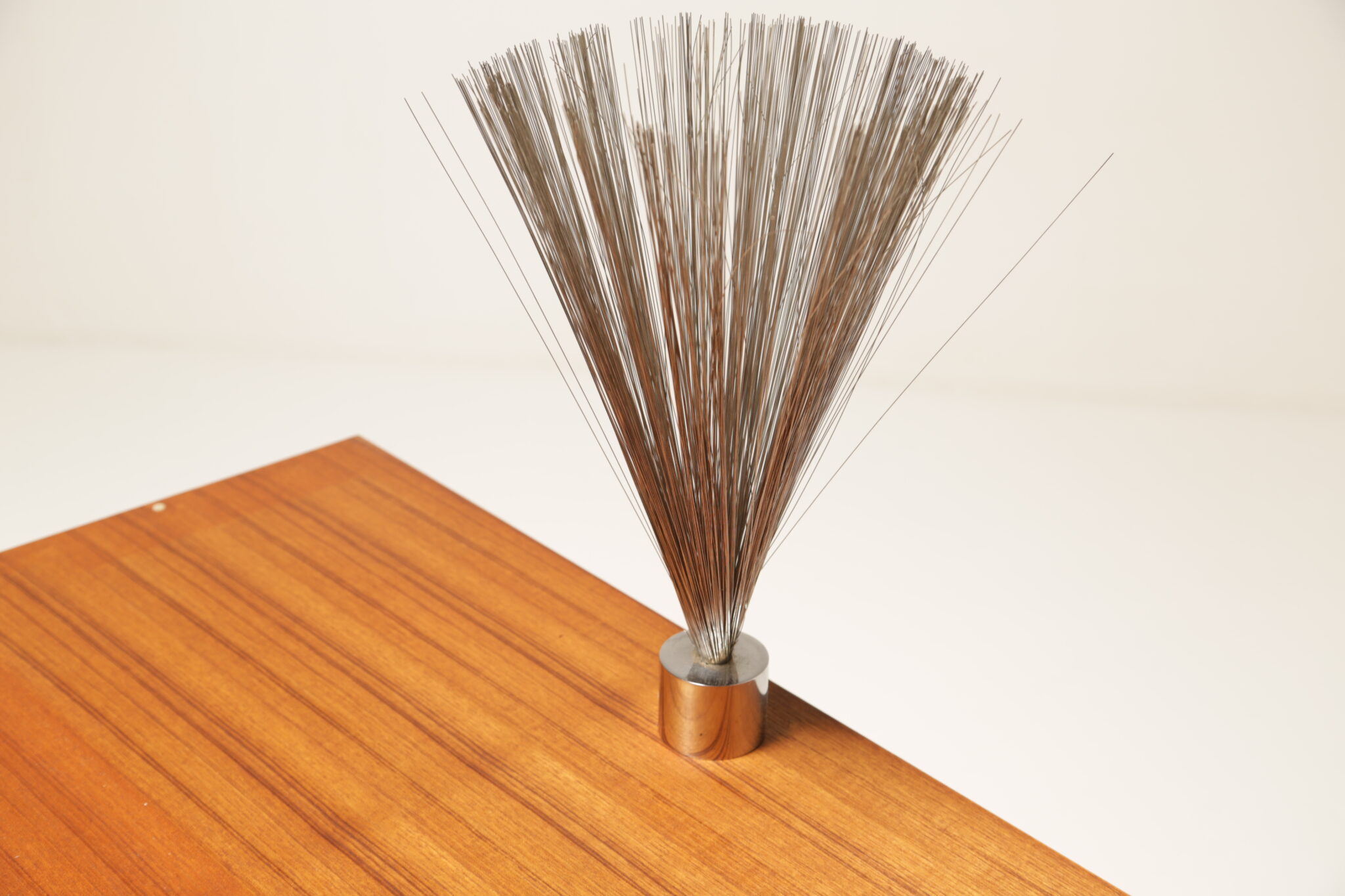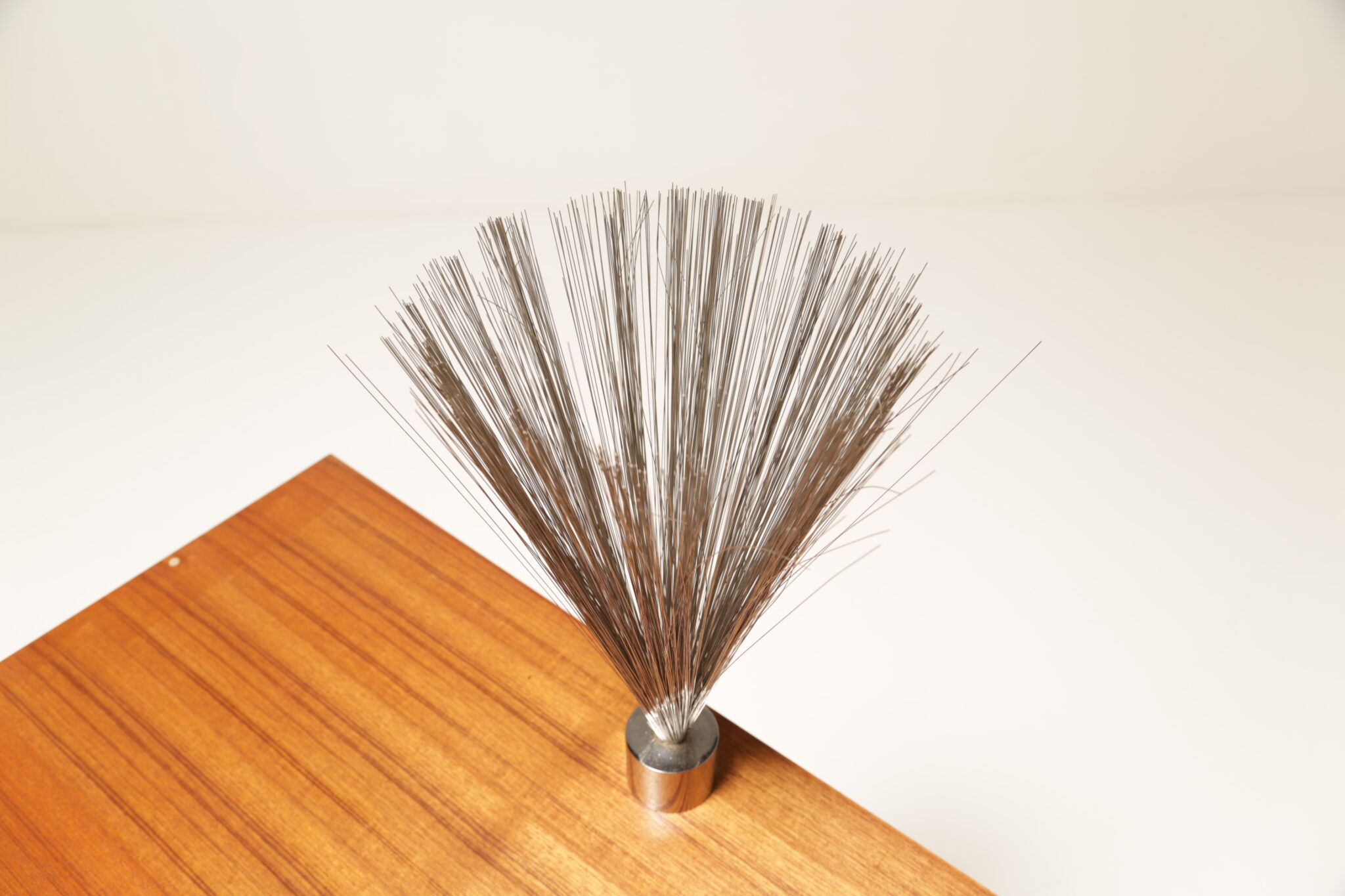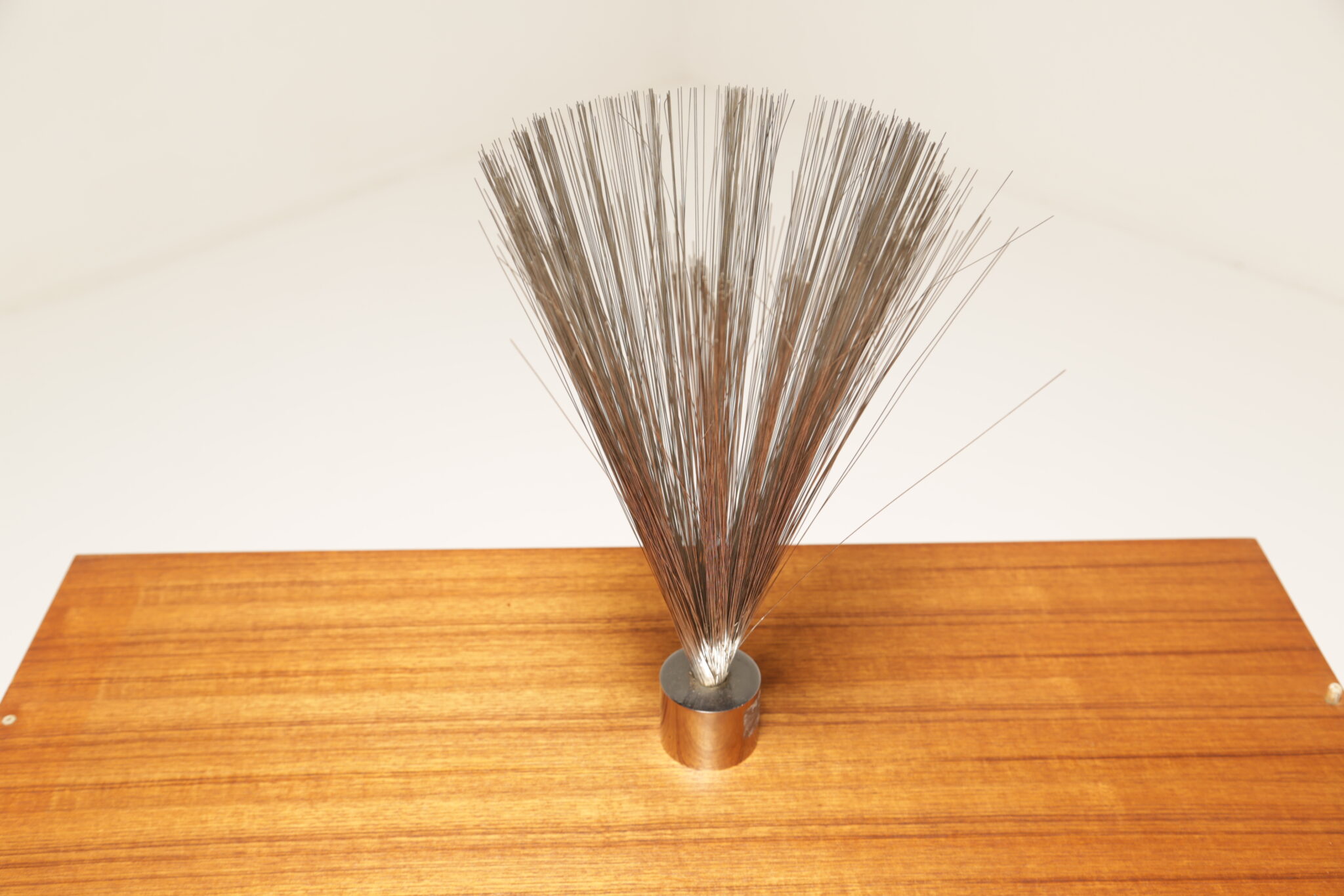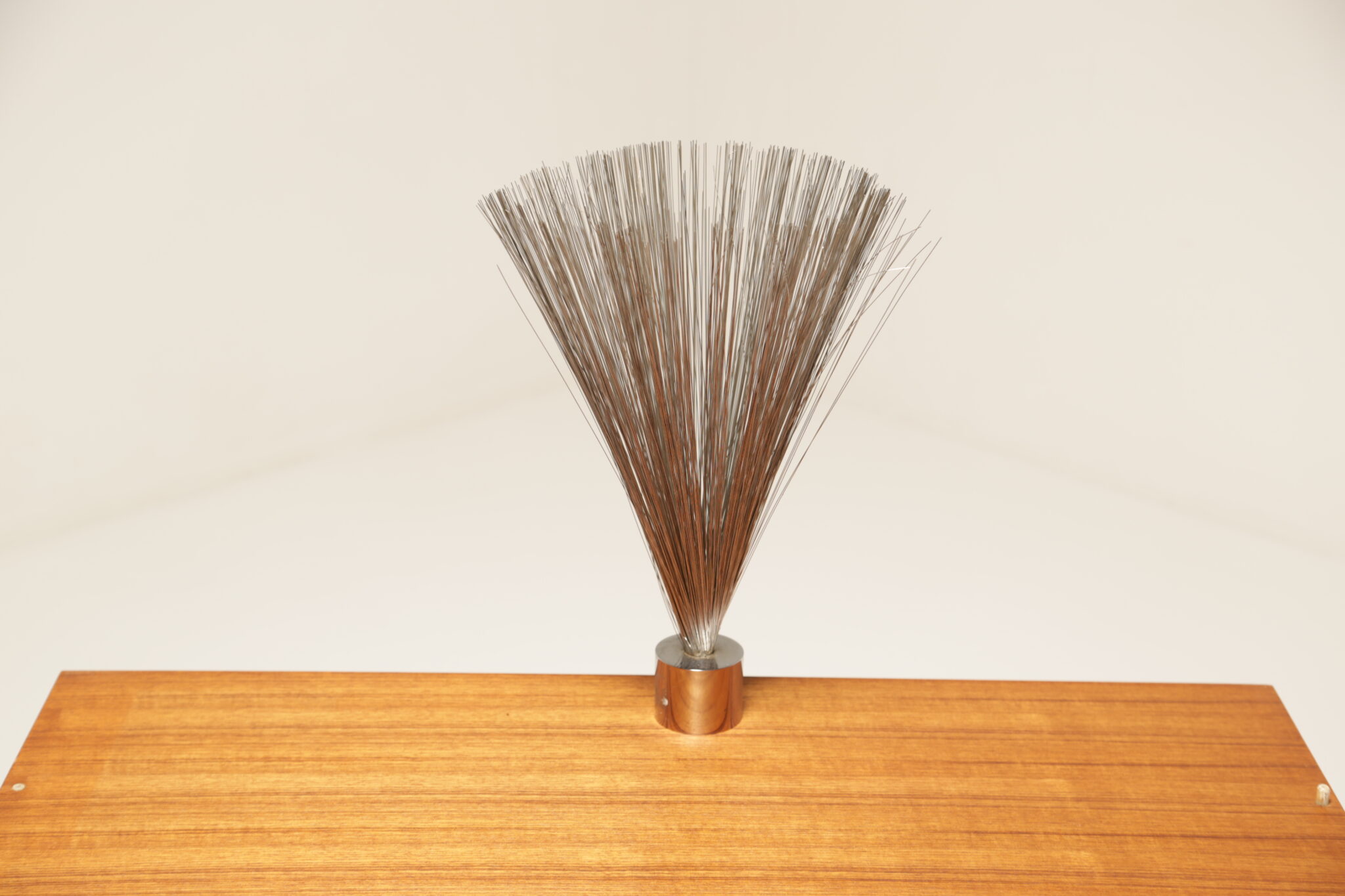 Introducing an exquisite work of art that captures the essence of mid-century elegance and innovation – the Dave Grossman Vintage Abstract Spray Sculpture. Inspired by the iconic creations of artists like Harry and Val Bertoia, this sculpture pays homage to the era’s fascination with kinetic art and the play of movement within space.