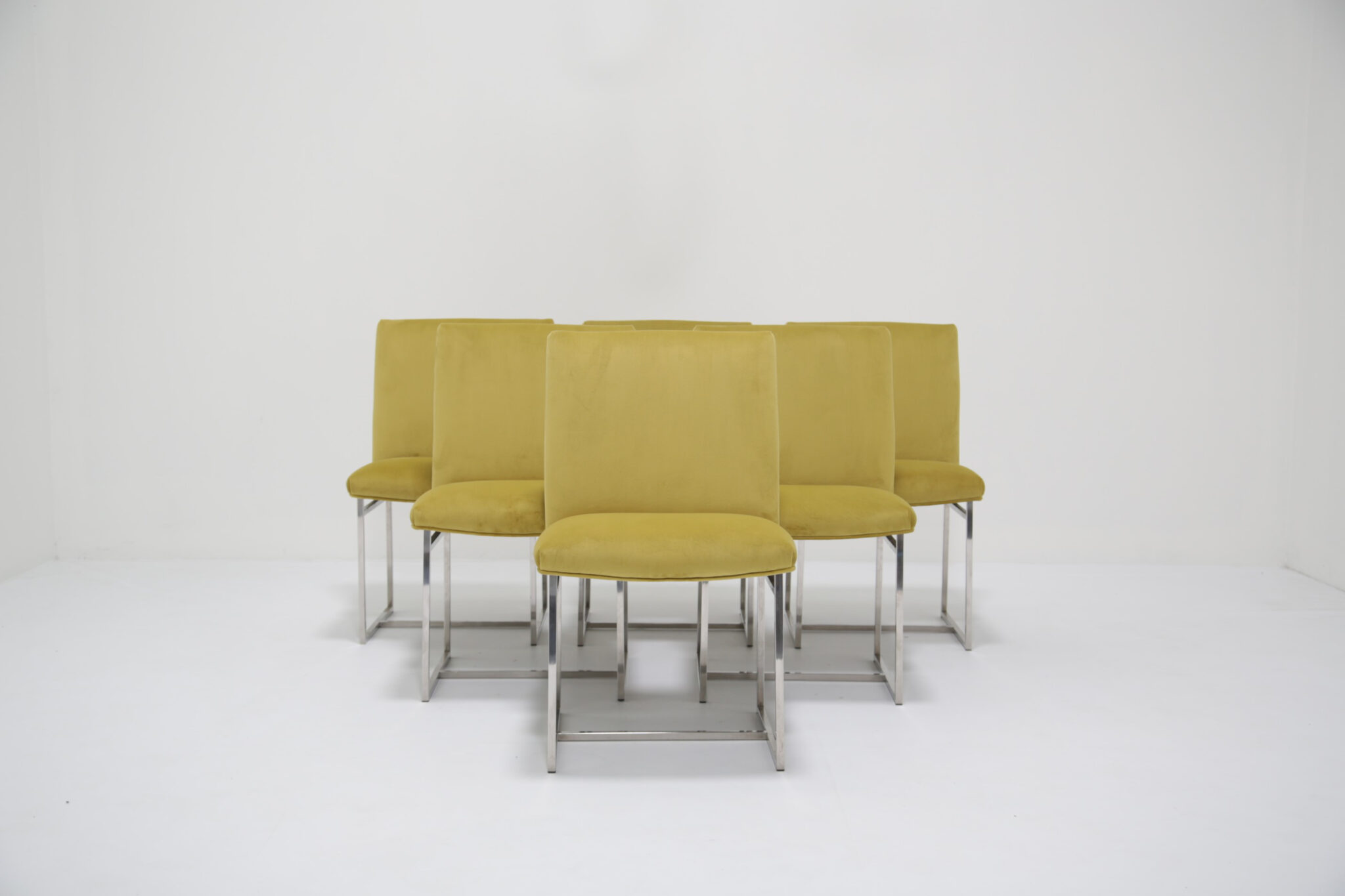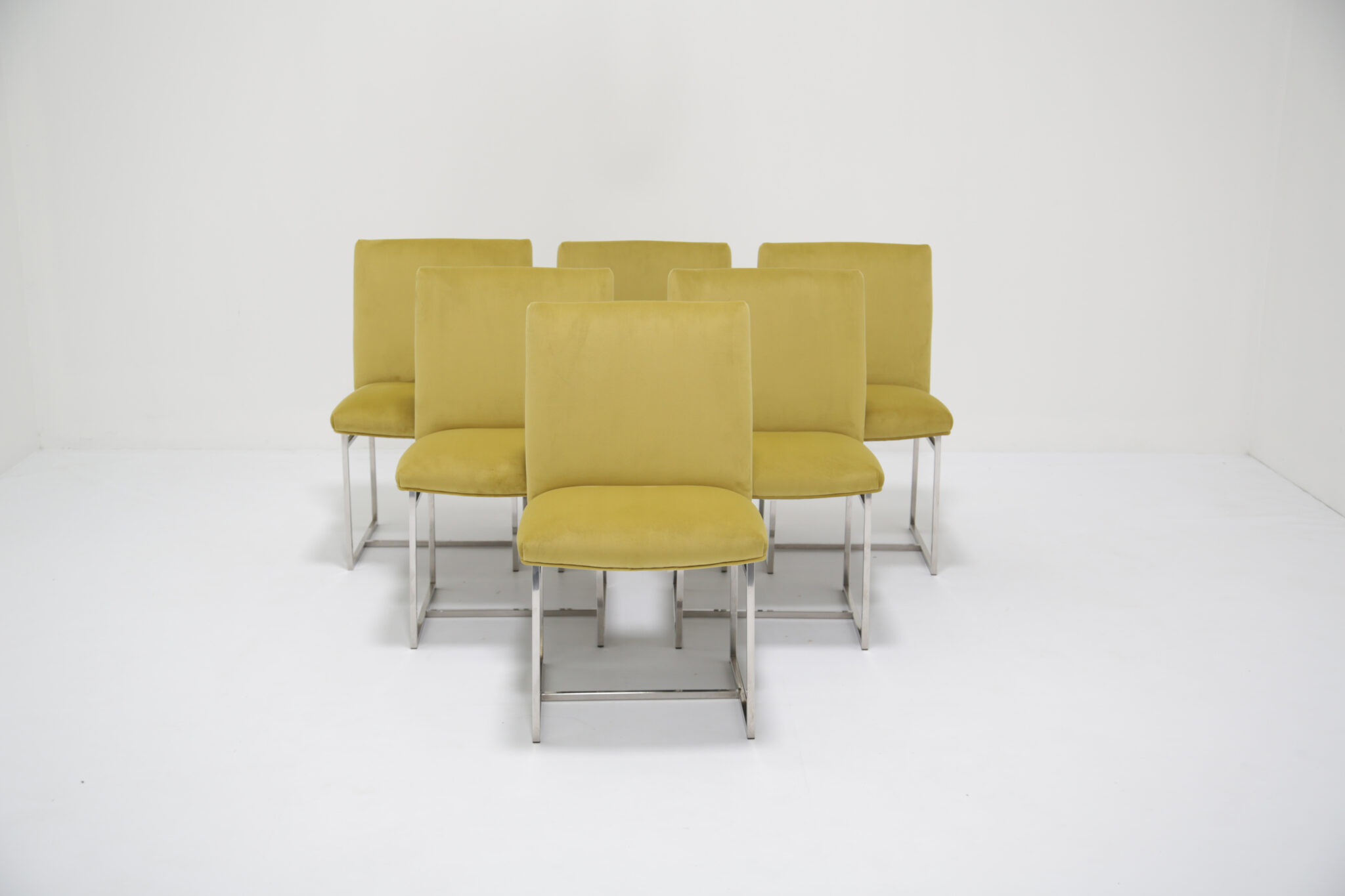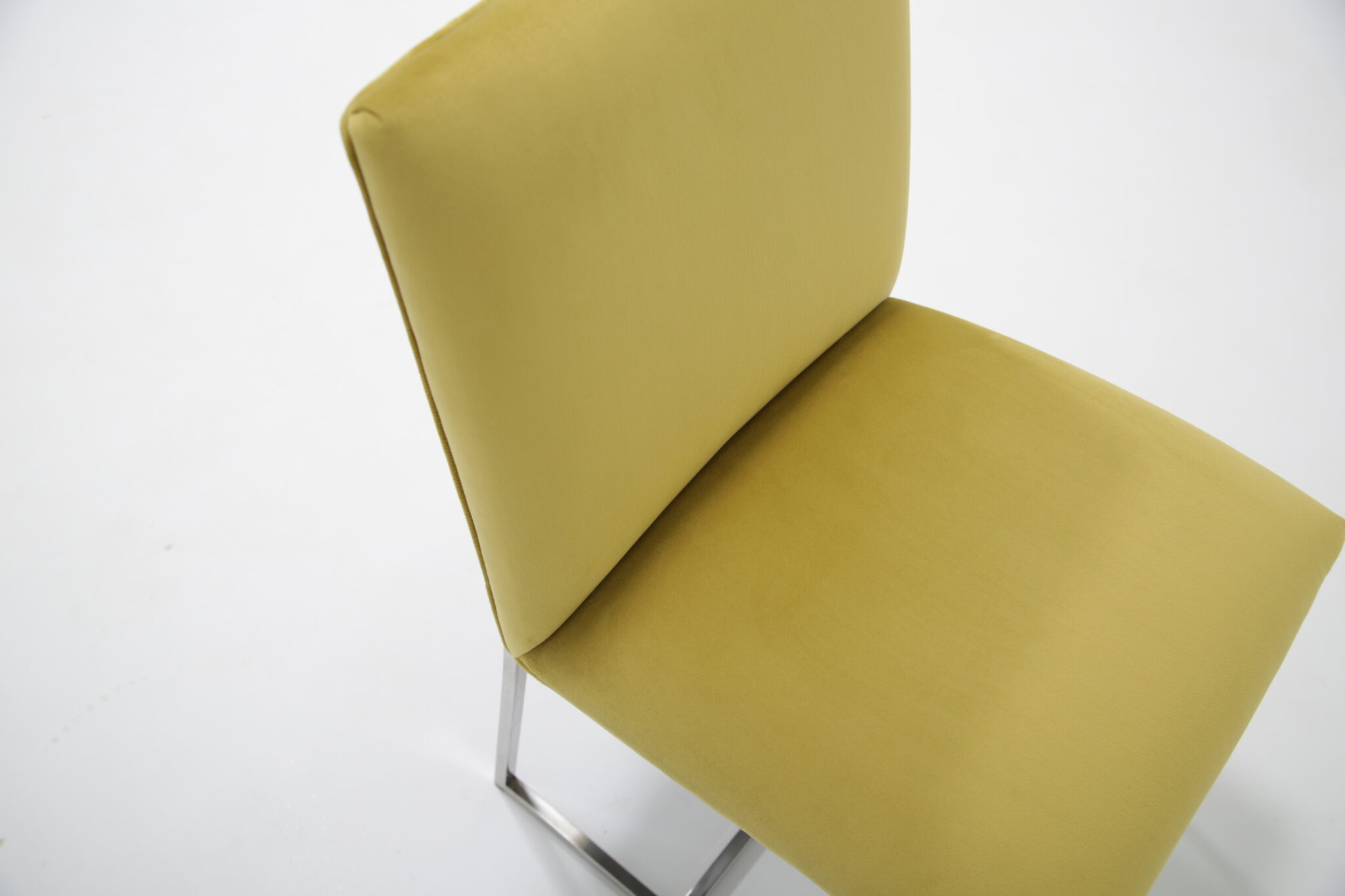 Just added to our collection are these exclusive dining chairs upholstered in a ginger lime green velvet on sturdy chrome frames. These chairs are incredible comfortable and provides good support for the back. The chrome frames are study and provides reflection in a room that may need it as natural as well as artificial light. The color choice of the upholstery adds a splash of brightness to a dining room that may need it. These chairs were imported from the States.