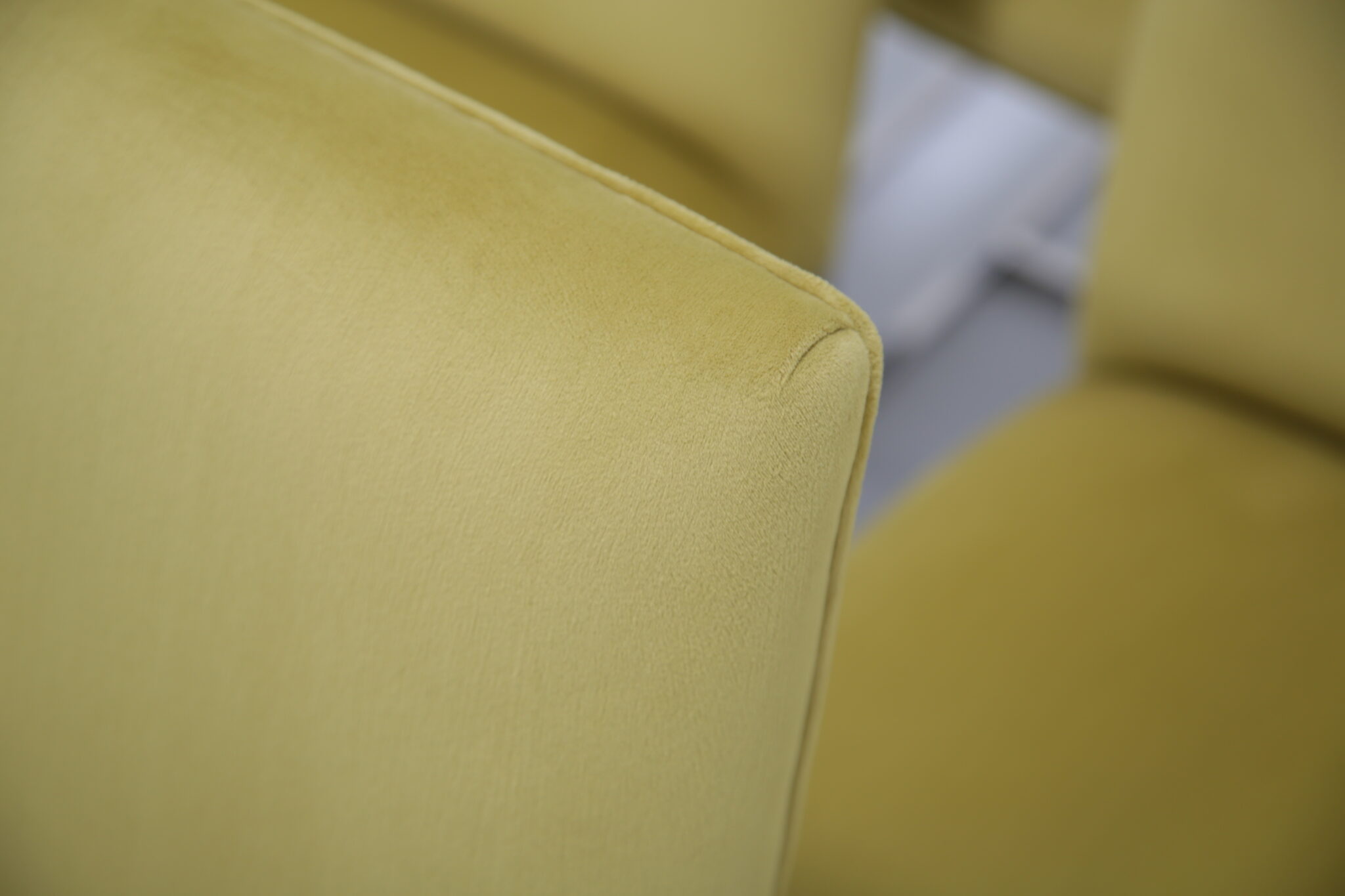 These chairs has been beautifully and professionally restored. Each frame has been polished to remove dirt, grime and scratches and the chairs has been upholstered in a modern high-quality fabric. The foam has also been replaced to meet modern standards.
