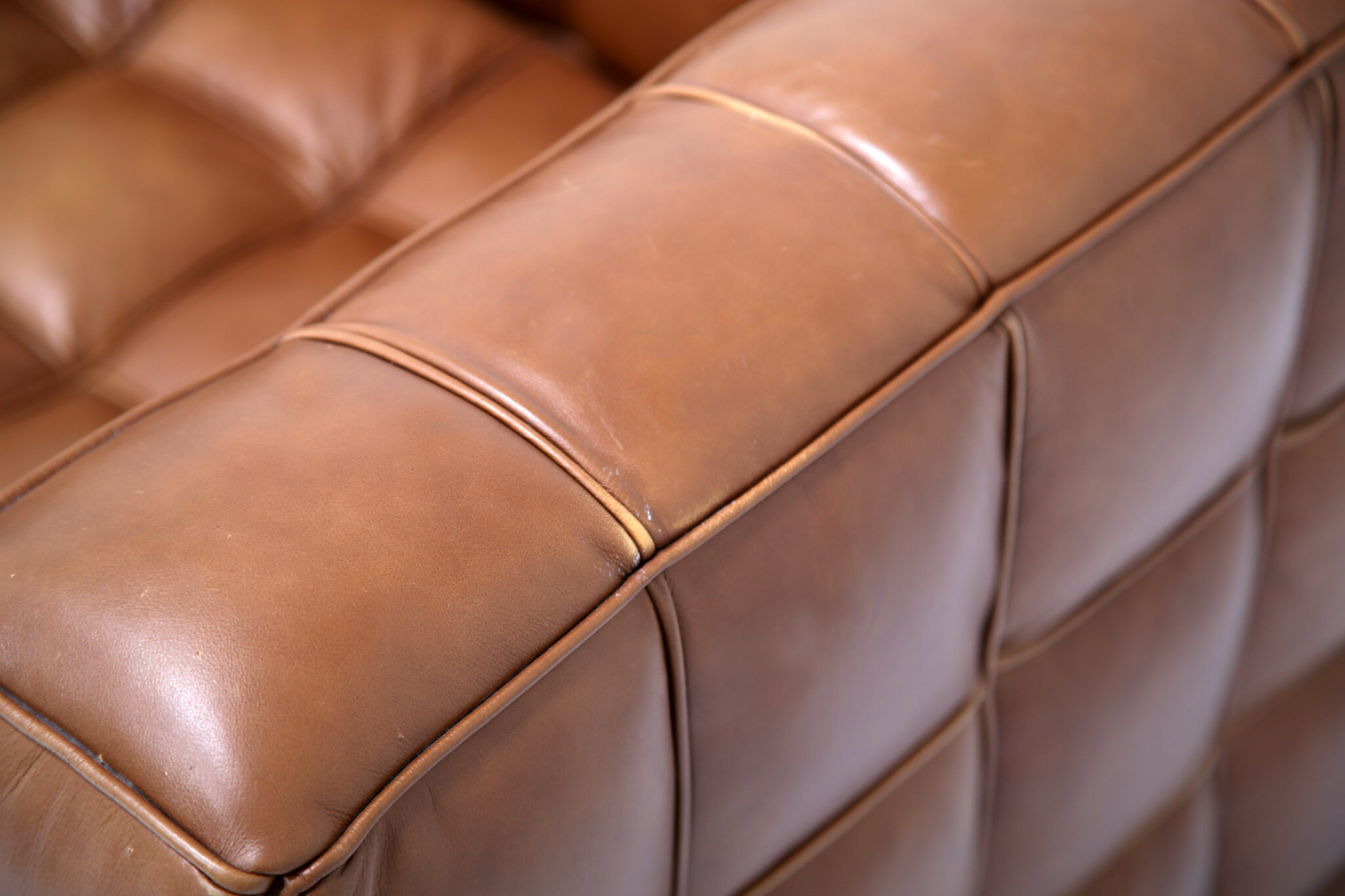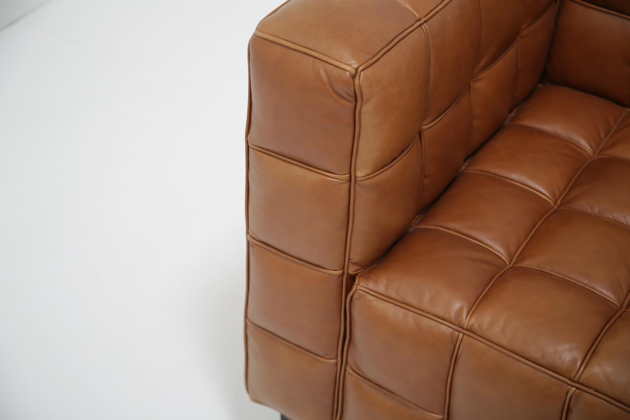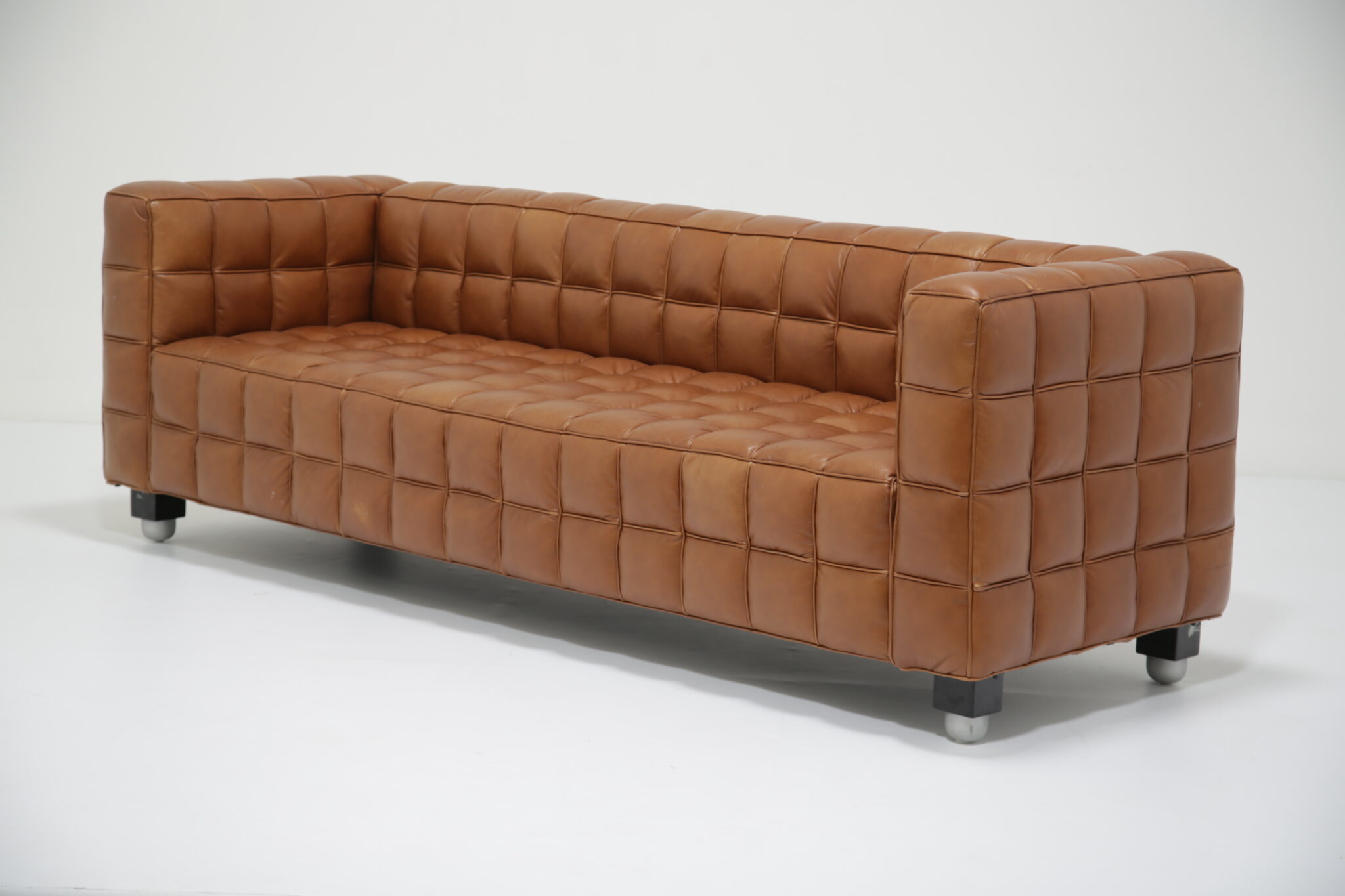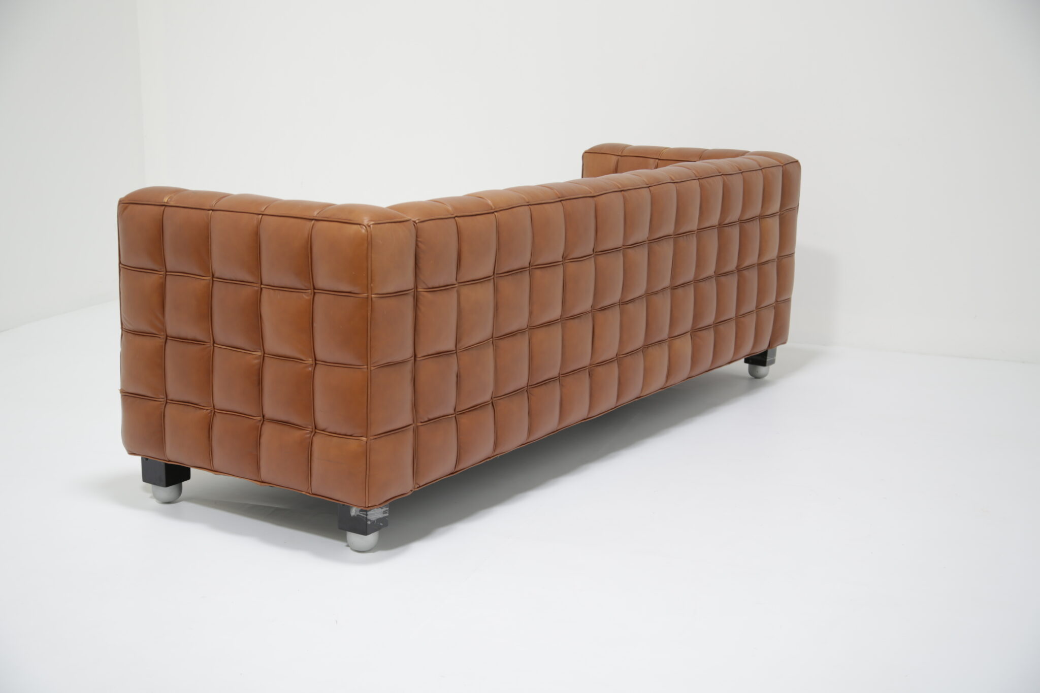 Comfort meets seamless style: this sofa embodies the design ethos of Josef Hoffmann, showcasing a blend of geometric precision. The sofa offers an architectural presence with clean lines and a boxy silhouette design which will work for most interiors. Perfect for a lounge area, an office or even a man cave.