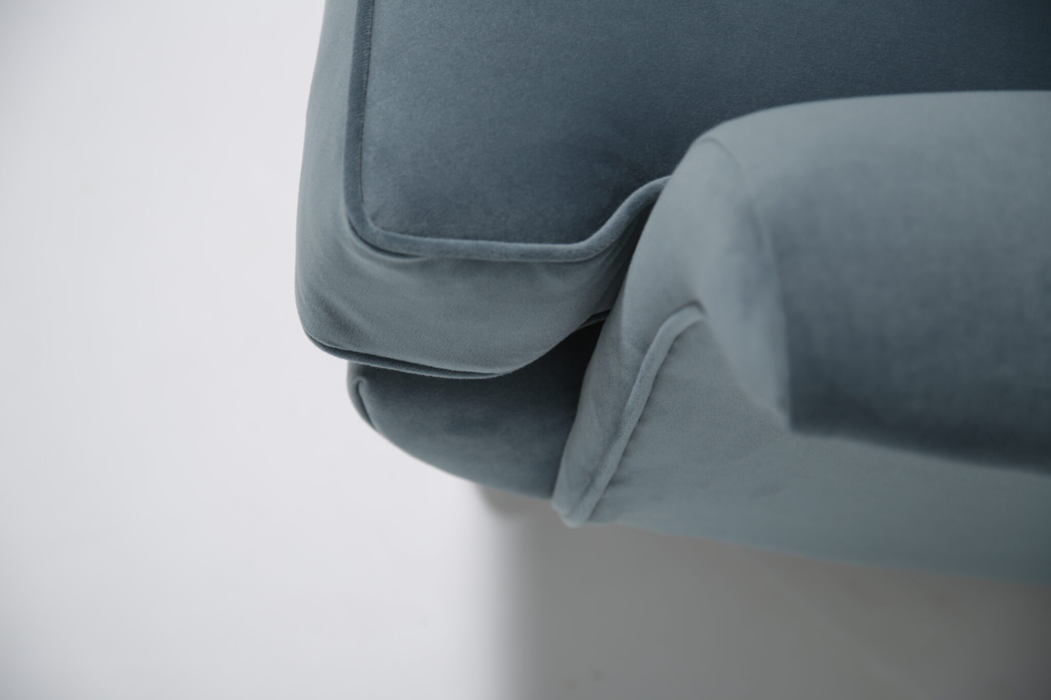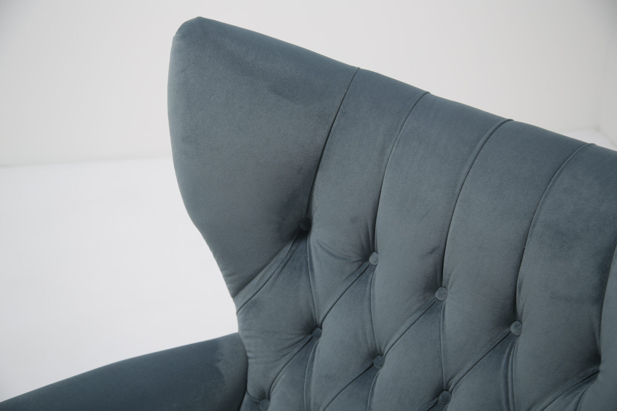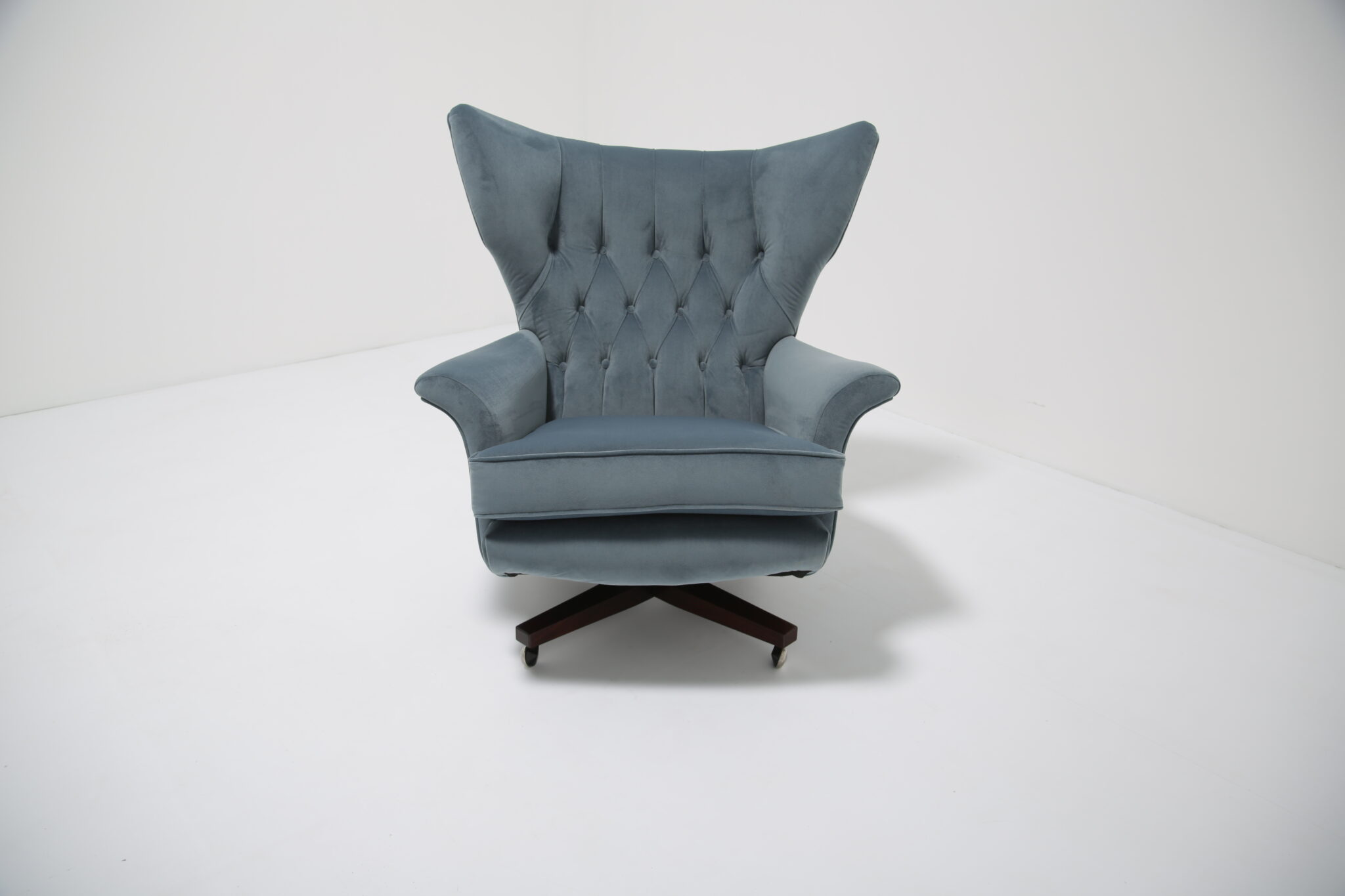 The chair has had it’s frame professionally restored and it has been reupholstered in a high-quality, durable and easy to maintain velvet fabric. During our upholstery process we replace the old foam and webbing with new, modern standard foam to ensure longevity, durability and to meet the modern standards. Base refinished and mechanisms checked for smooth function.