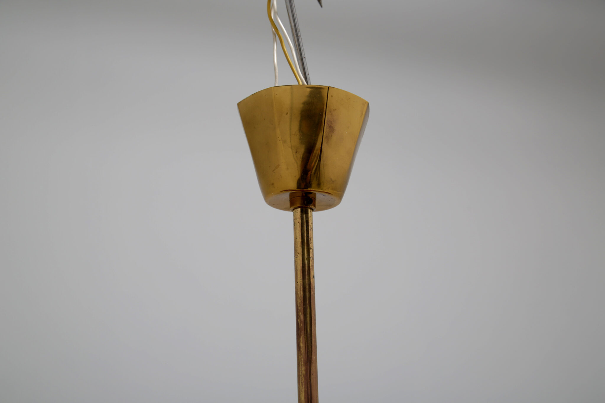 The glass shades show no sign of damage or cracks. The brass frame does have some sign of age and use which is common for a piece of this age.
