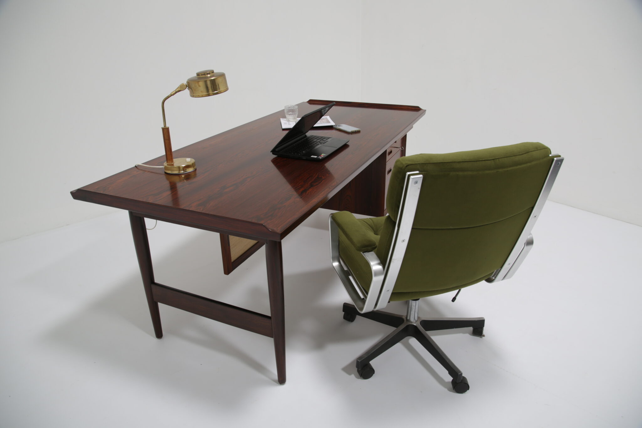 This desk is large which allows for usage of multiple screens and would suit a commercial or domestic environment. The desk is photographed with our Karl Ekselius desk chair, which is available in another listing.
