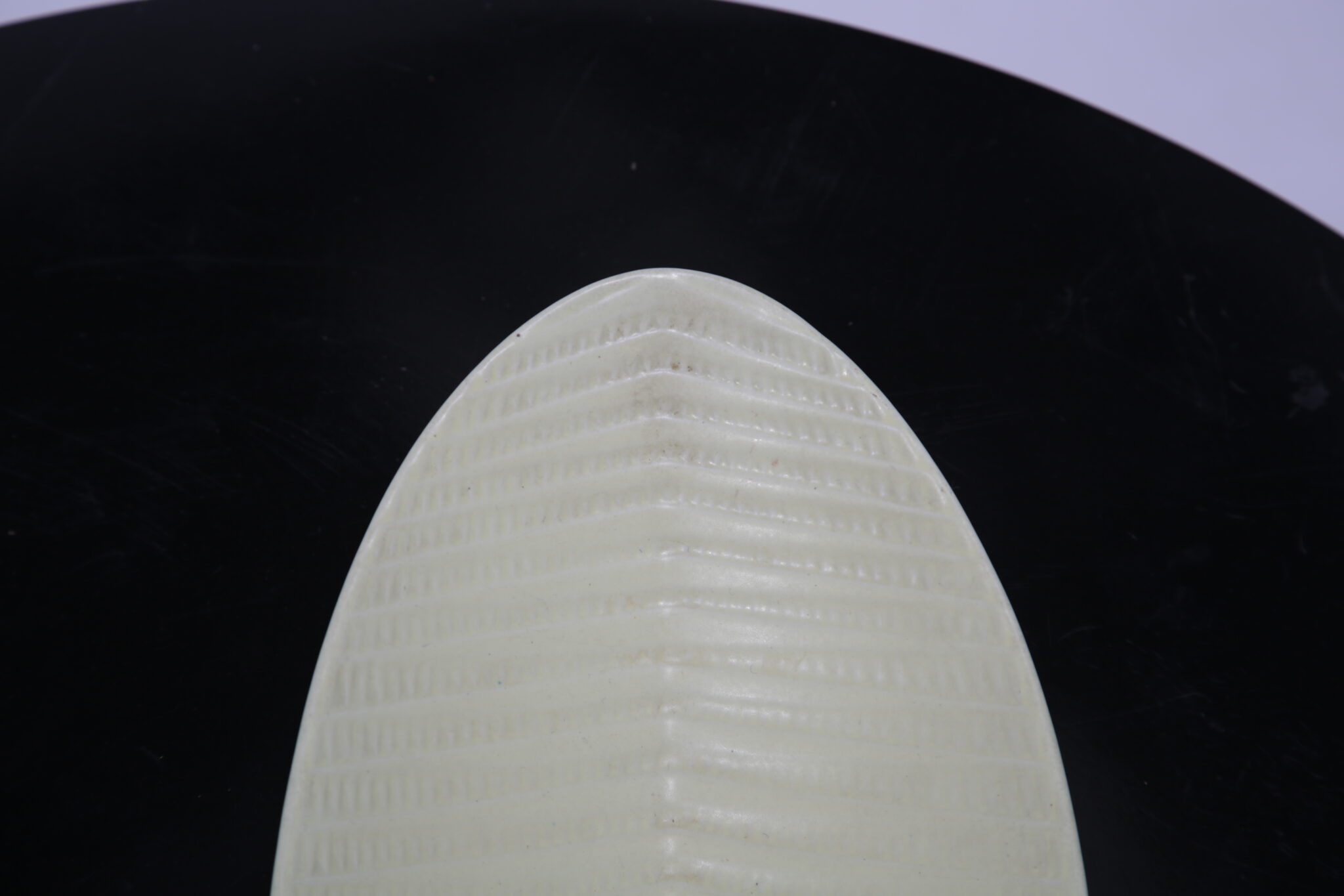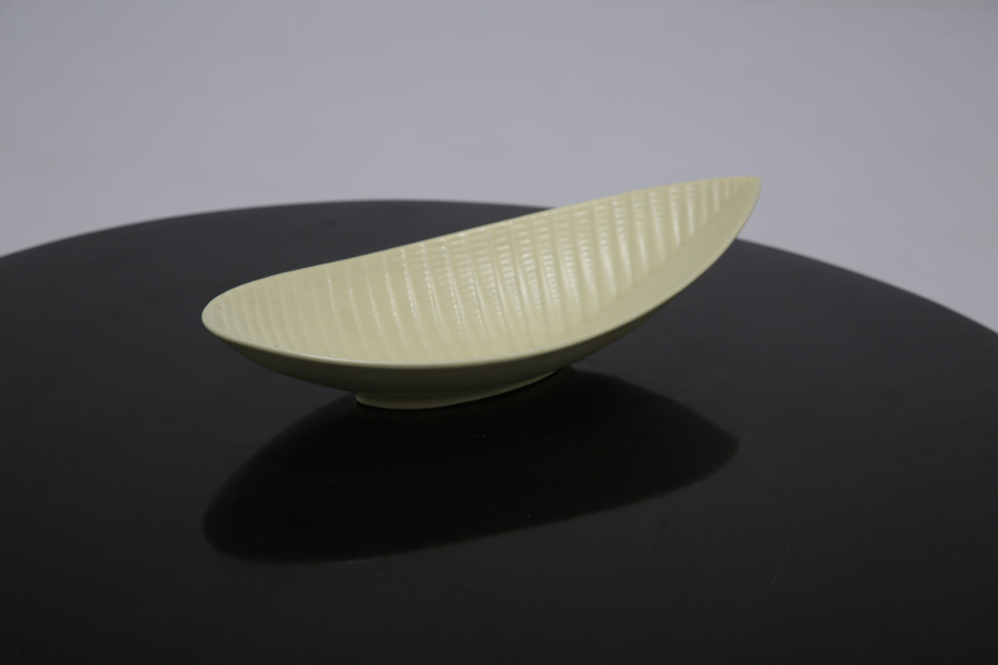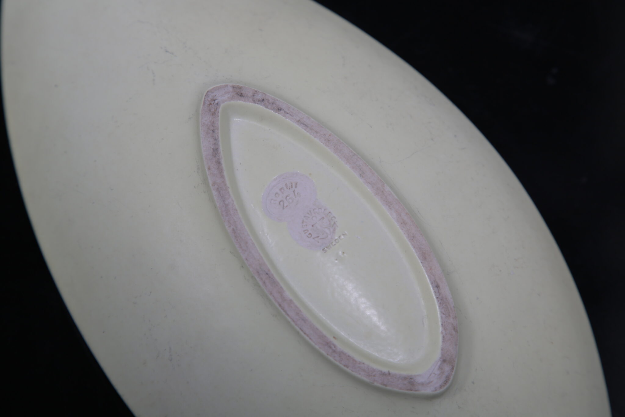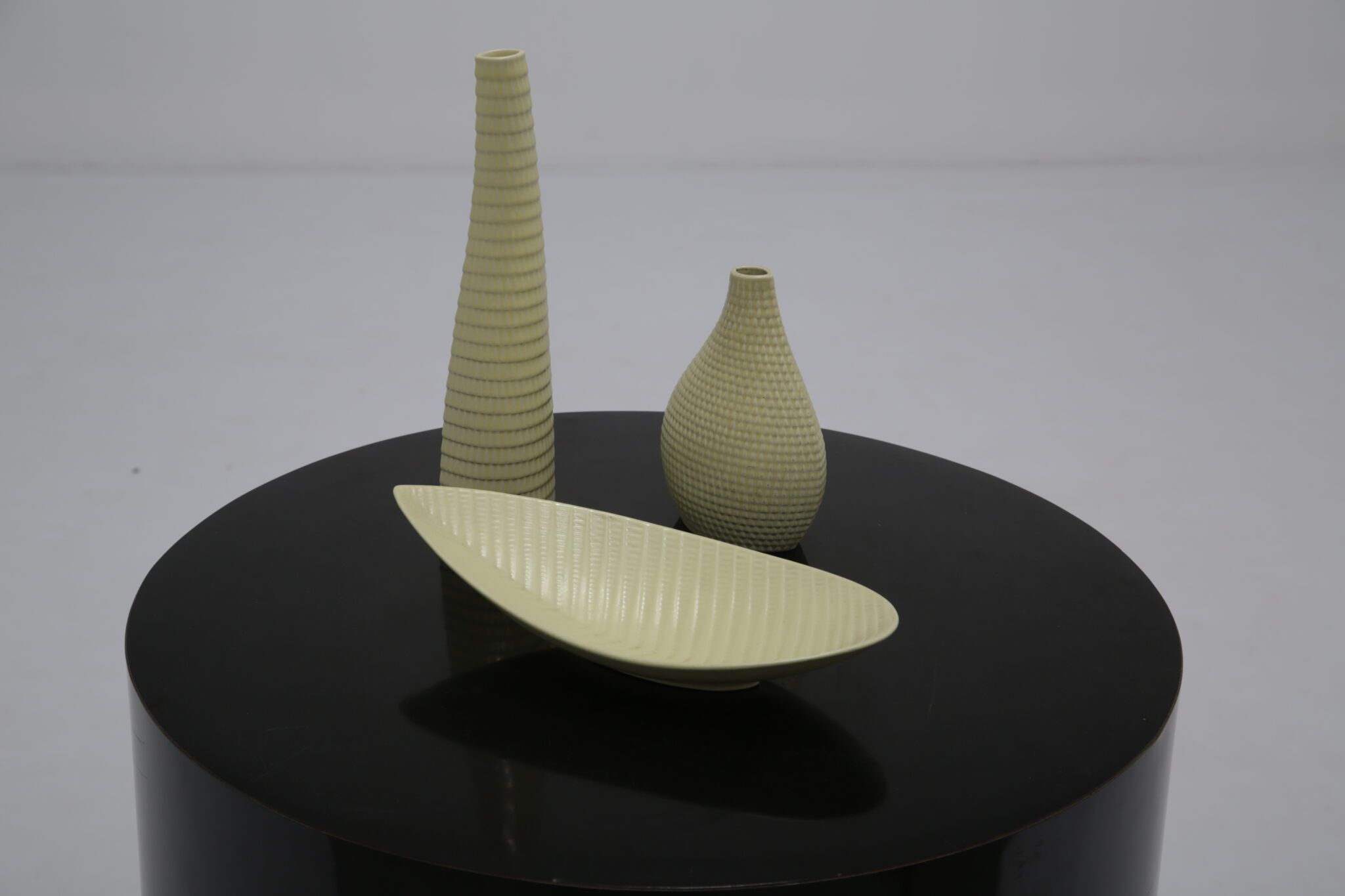Stig Lindberg designed “Reptil” (translated to Reptile) in 1953 and featured a series of three vases and two dishes/bowls. The design is minimalistic with clean curved edges and a scale-like relief design all around, manufactured by Gustavsberg.