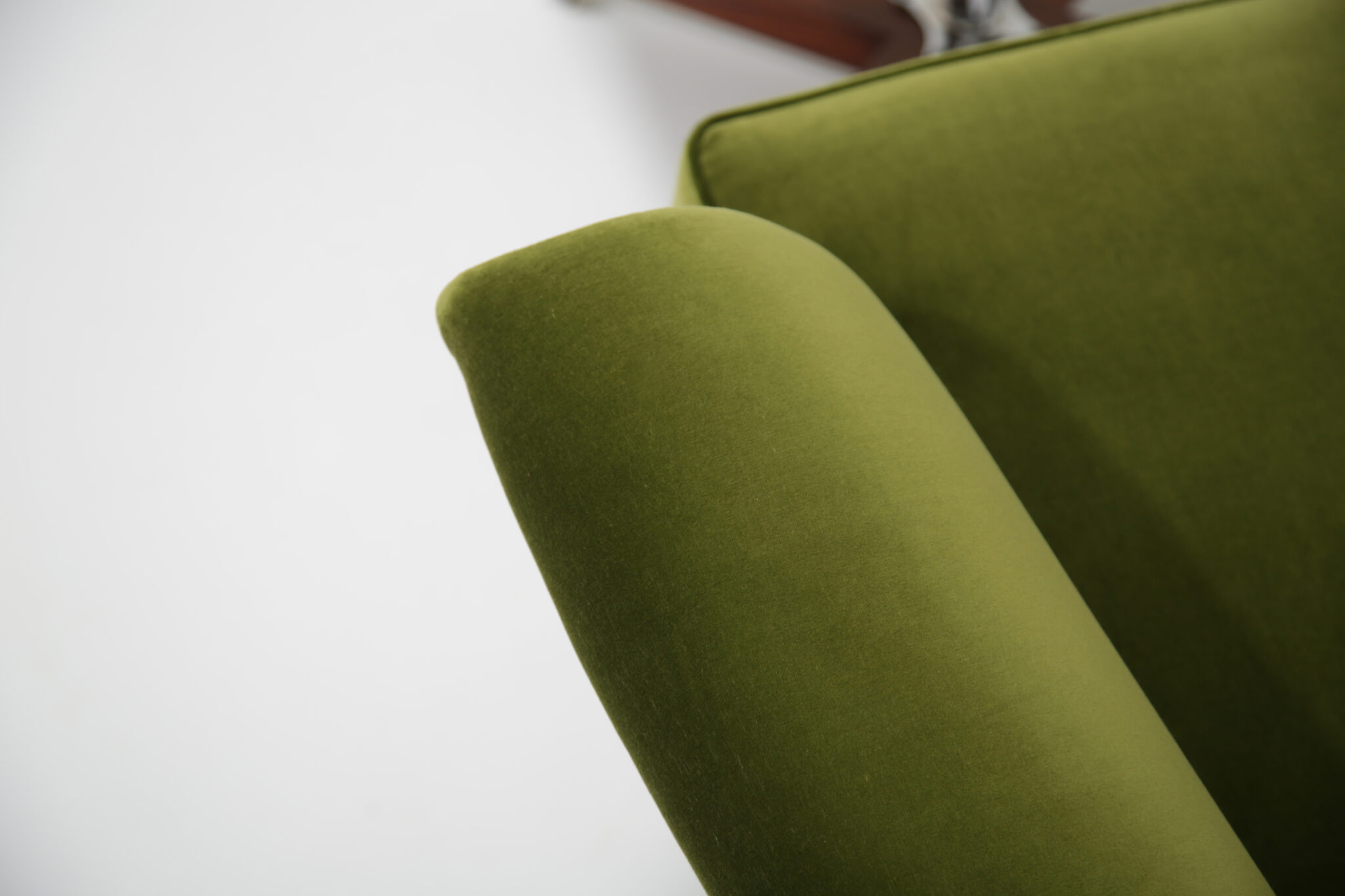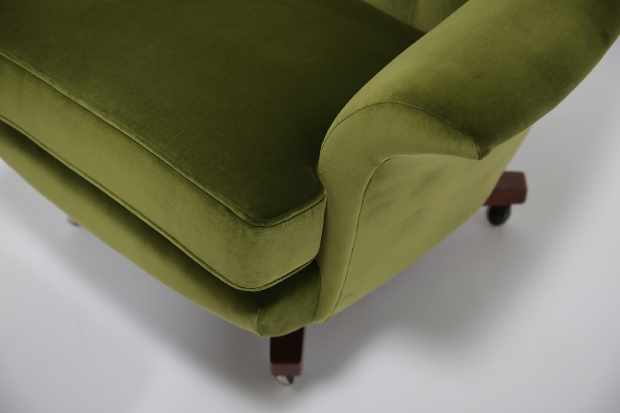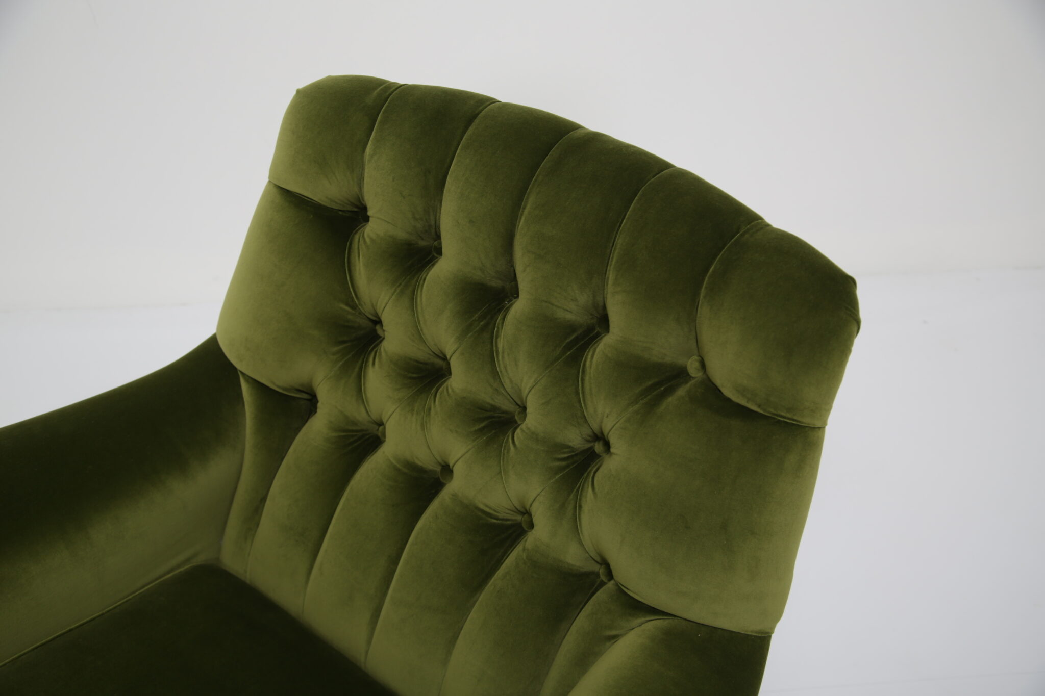 This chair has been fully restored by our expert in-house restoration team. We have recently upholstered this in a high-quality, durable cotton velvet where we have replaced the foam and dacron, in theory a brand new chair on a vintage frame.