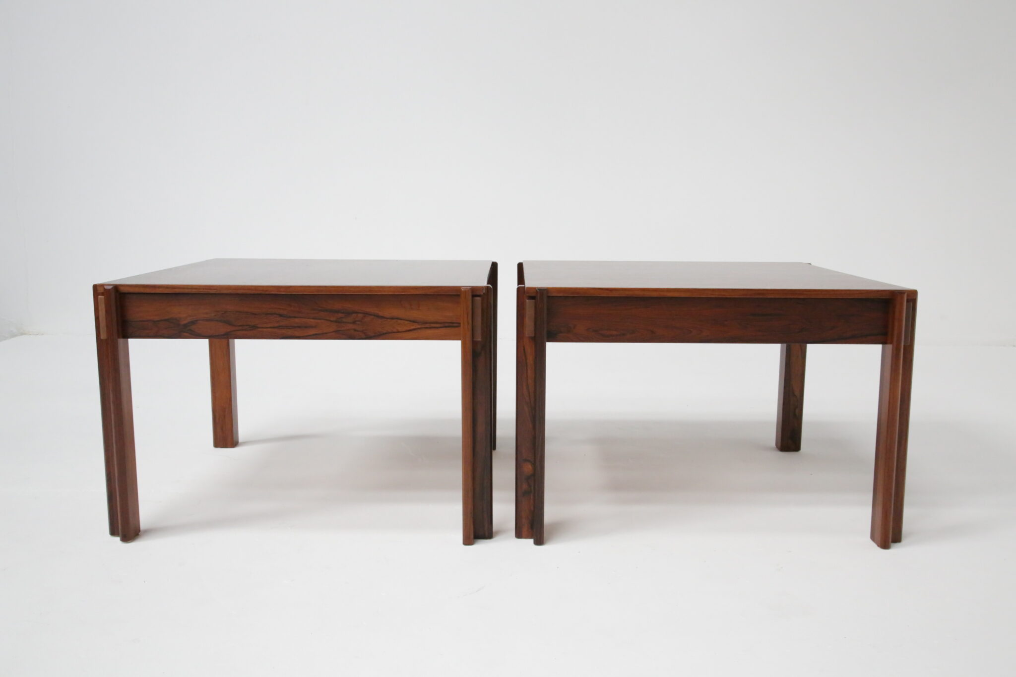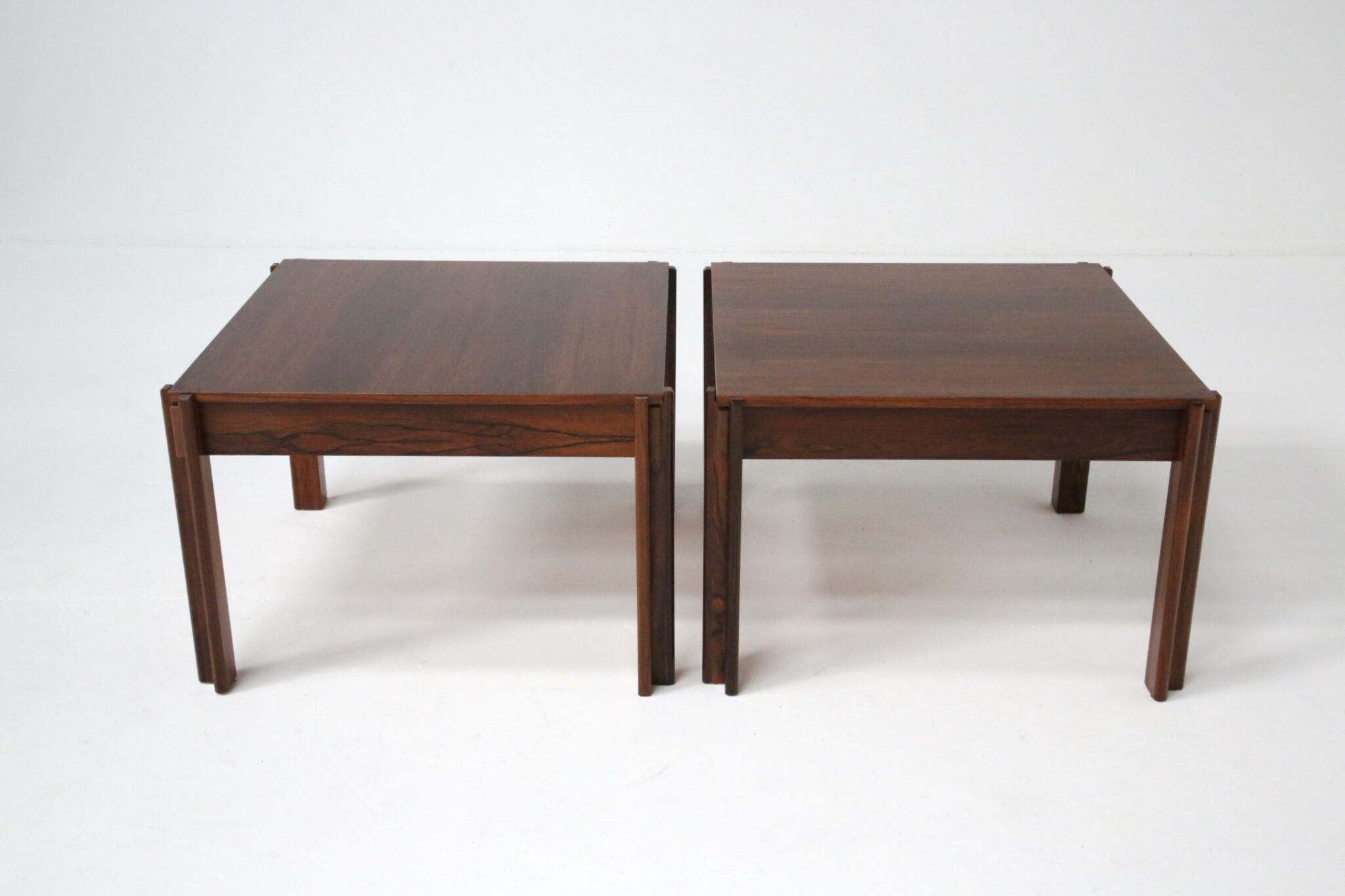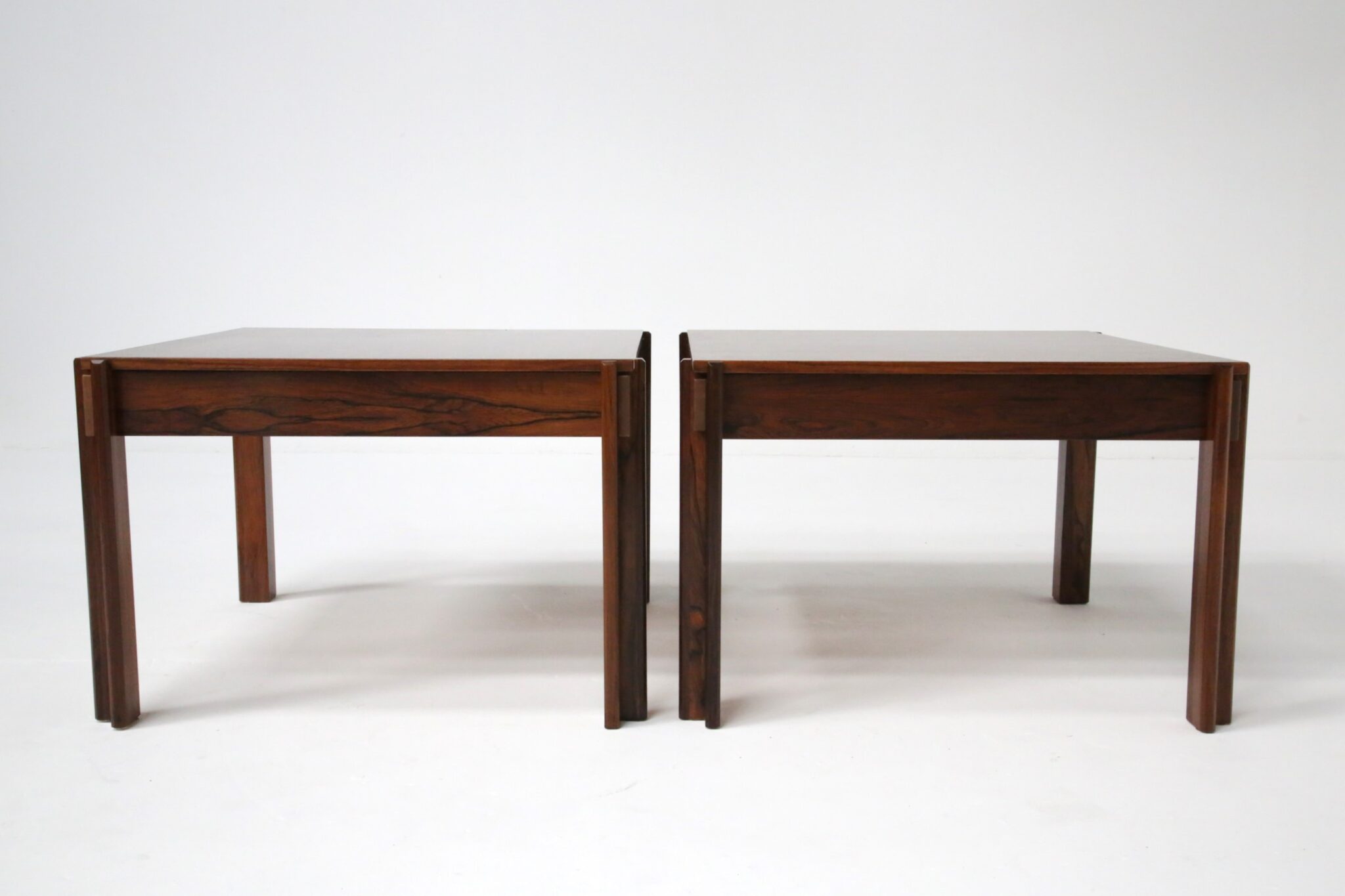 This stunning pair of vintage rosewood side tables was designed by the Swedish furniture designer Ingvar Stockum for Futura Mobler (Futura Furniture) in the 1960s. During our years of trading in vintage Scandinavian furniture we haven’t seen many of these side tables around. These tables are perfect for a living space that require a pair of larger side tables The rosewood grain is beautifully pronounced throughout.
