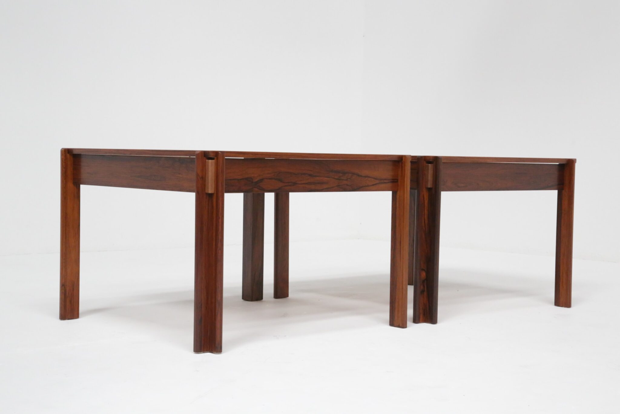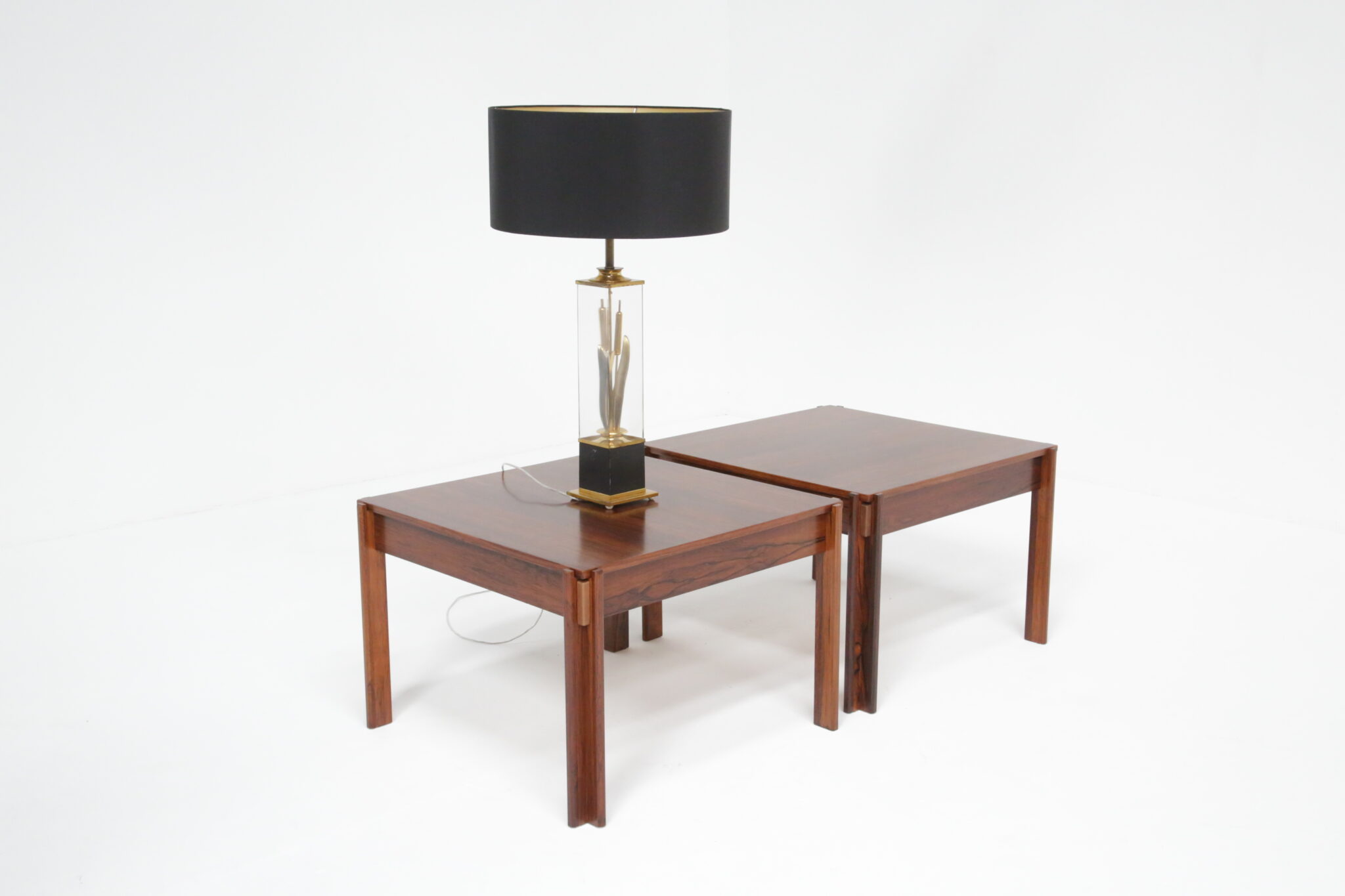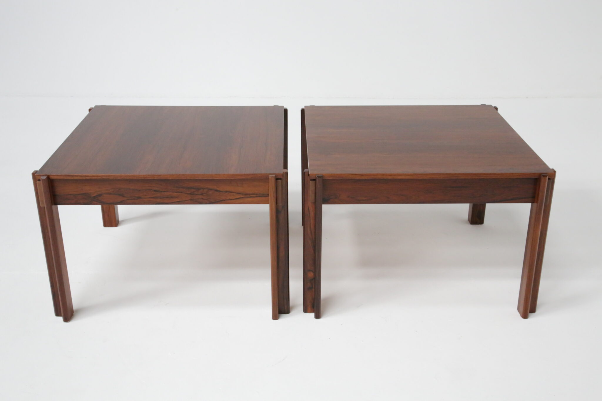 This stunning pair of vintage rosewood side tables was designed by the Swedish furniture designer Ingvar Stockum for Futura Mobler (Futura Furniture) in the 1960s. During our years of trading in vintage Scandinavian furniture we haven’t seen many of these side tables around. These tables are perfect for a living space that require a pair of larger side tables The rosewood grain is beautifully pronounced throughout.