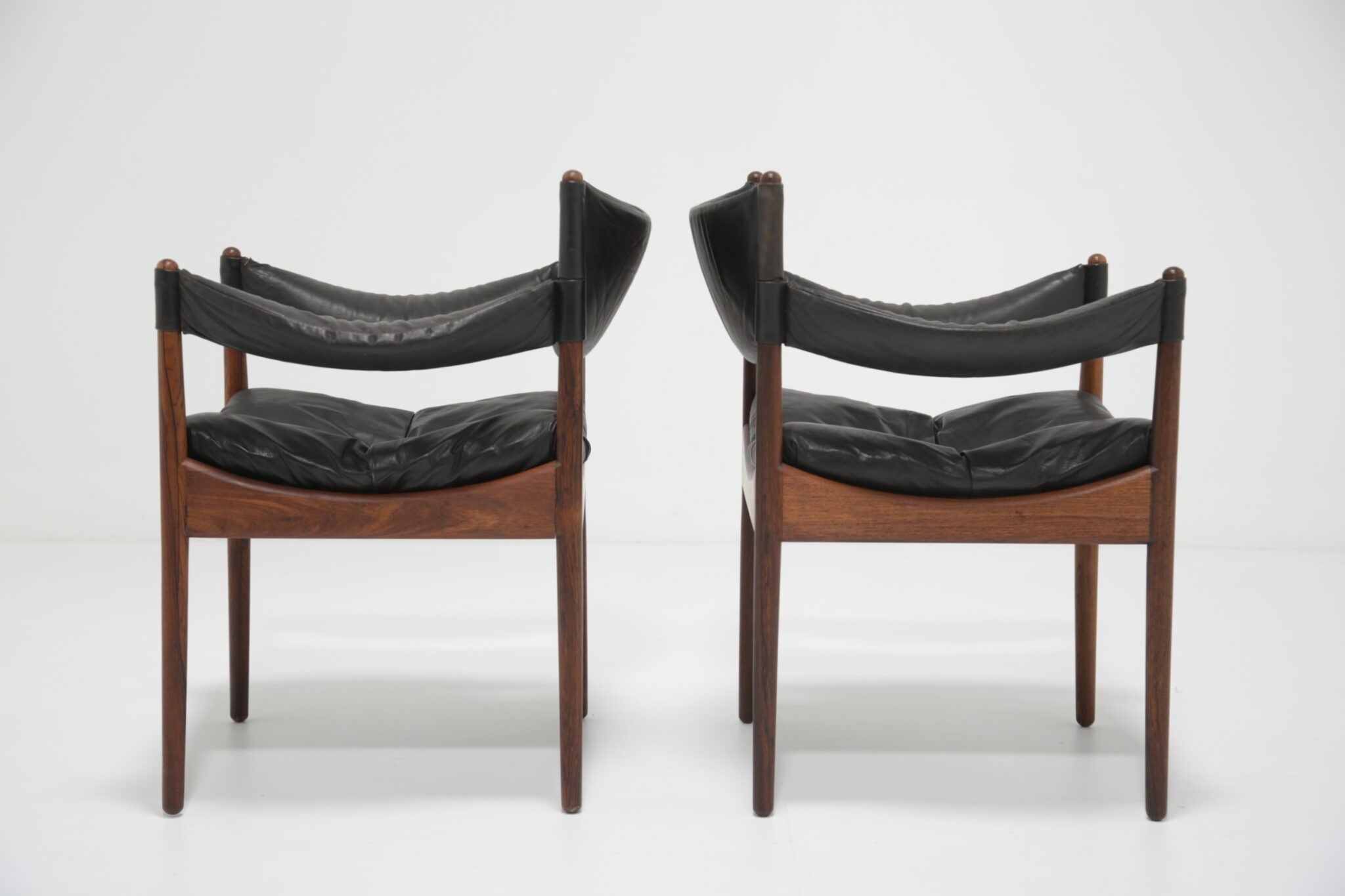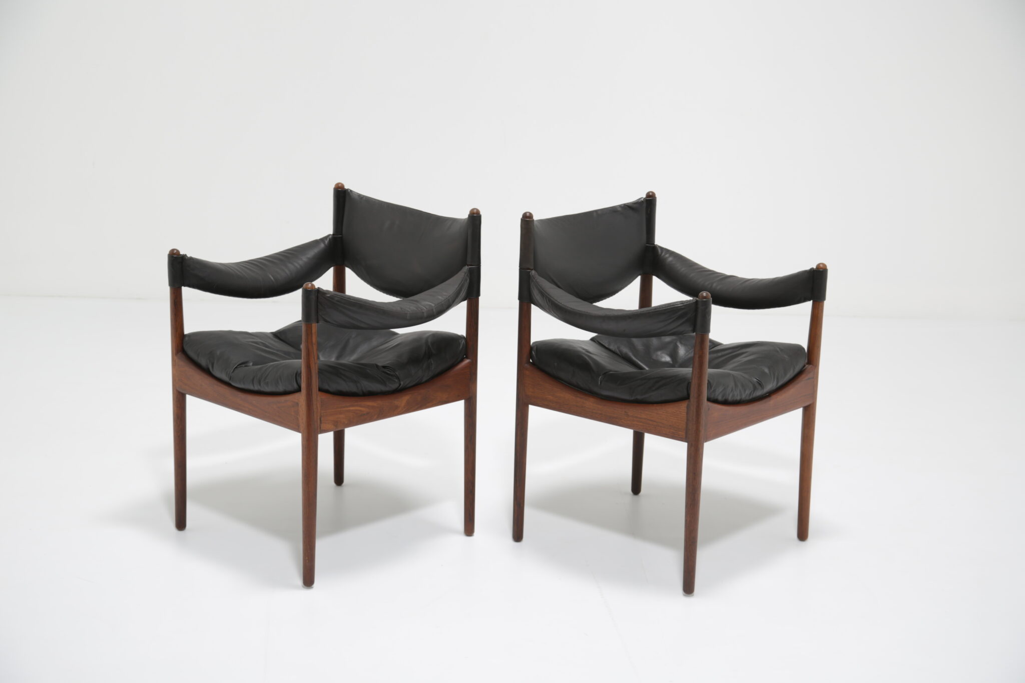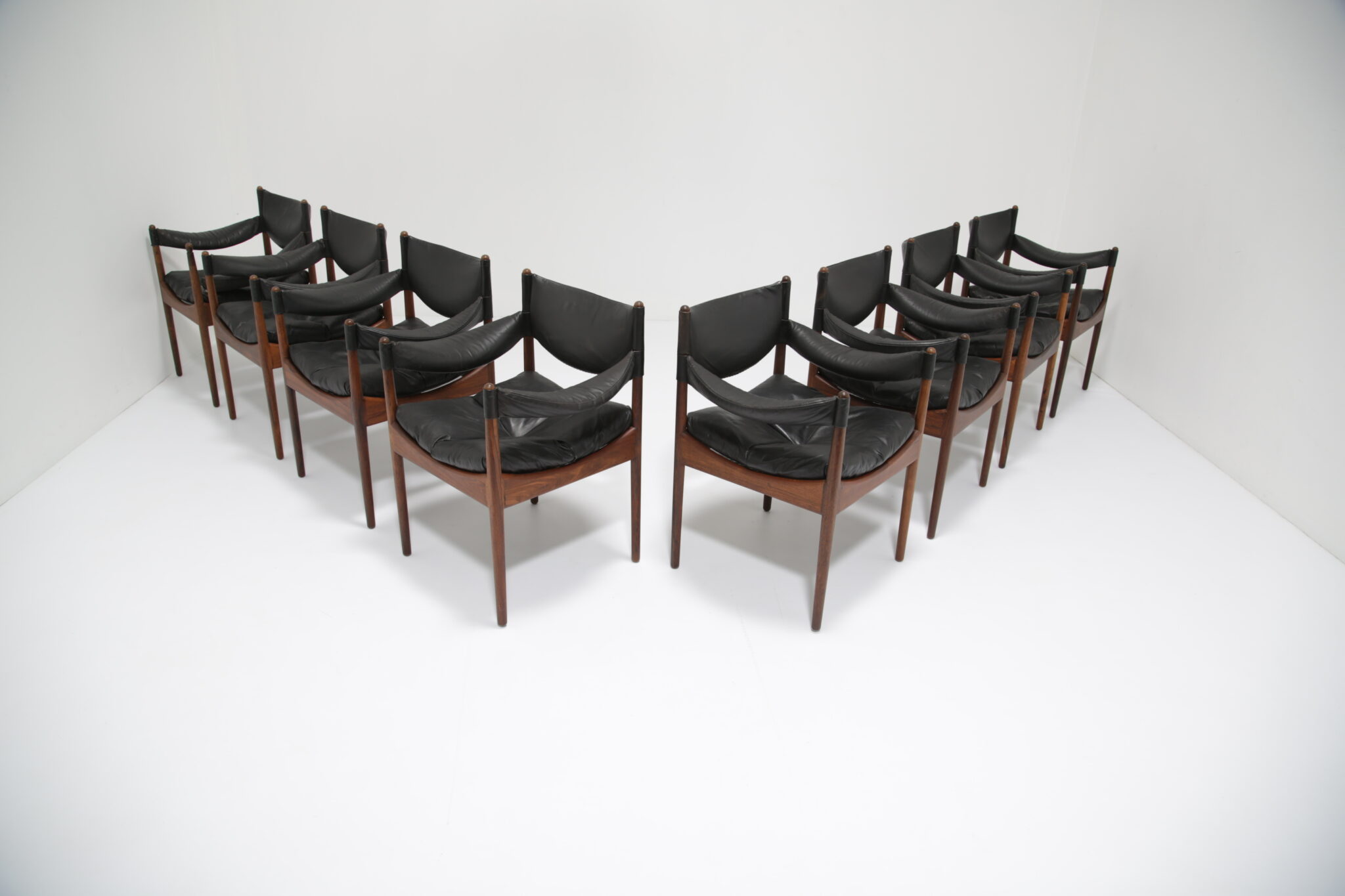 Take a look at these gorgeous dining chairs in it’s original black leather upholstery. Designed by the Danish designer Kristian Solmer Vedel for Søren Willadsen in the 1960s. These dining chairs are comfortable to sit in and provides optimal support for the back and arms, perfect for longer durations seated at the dining table with friends and family. The design of these chairs are stunning with curved rails, nicely shaped arms and rounded legs. These would also function in a boardroom or as an alternative to an office chair.