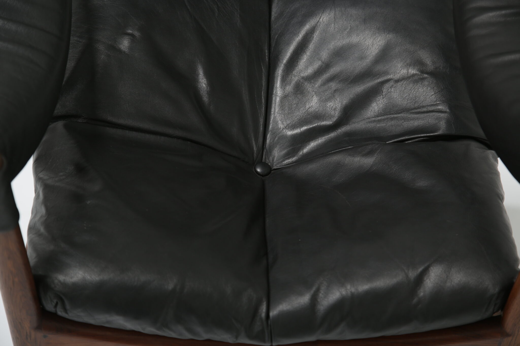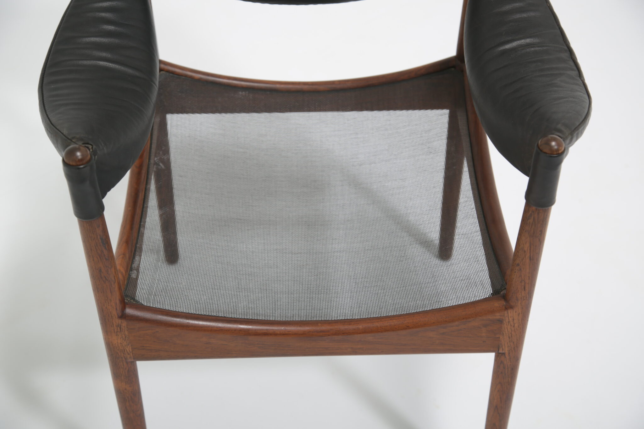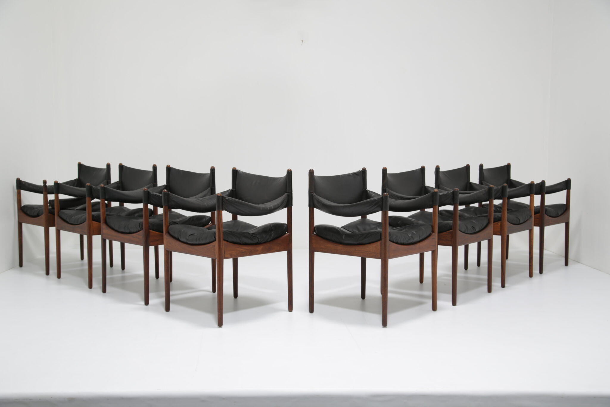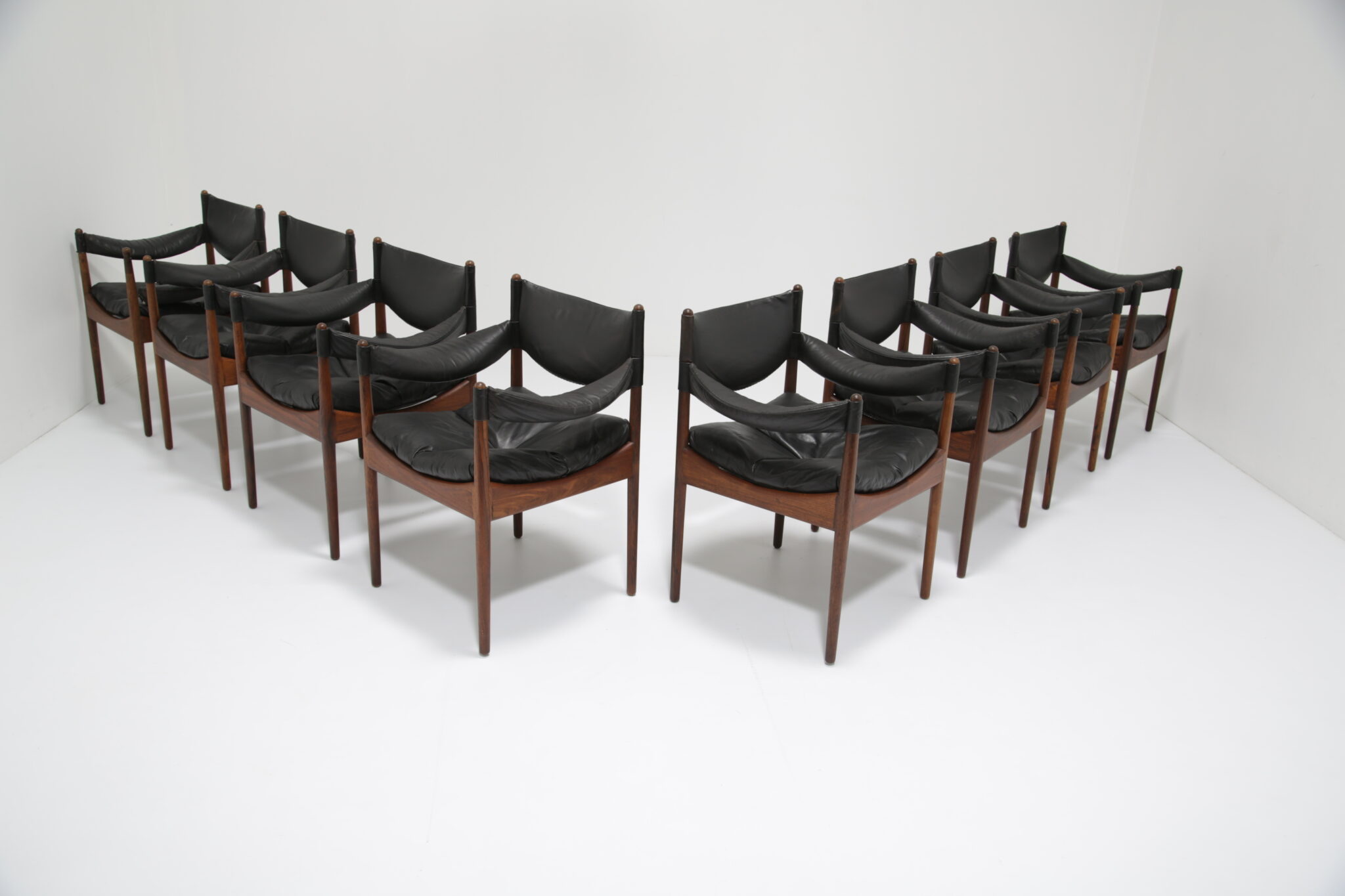 Take a look at these gorgeous dining chairs in it’s original black leather upholstery. Designed by the Danish designer Kristian Solmer Vedel for Søren Willadsen in the 1960s. These dining chairs are comfortable to sit in and provides optimal support for the back and arms, perfect for longer durations seated at the dining table with friends and family. The design of these chairs are stunning with curved rails, nicely shaped arms and rounded legs. These would also function in a boardroom or as an alternative to an office chair.