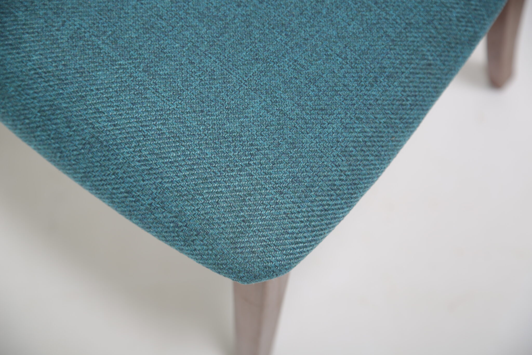 The frames have been fully restored by our in-house restoration team which includes stripping, sanding and polishing of each frame, ensuring that each joint is in perfect condition. Each seat has been newly upholstered in a modern fabric and have new foam.