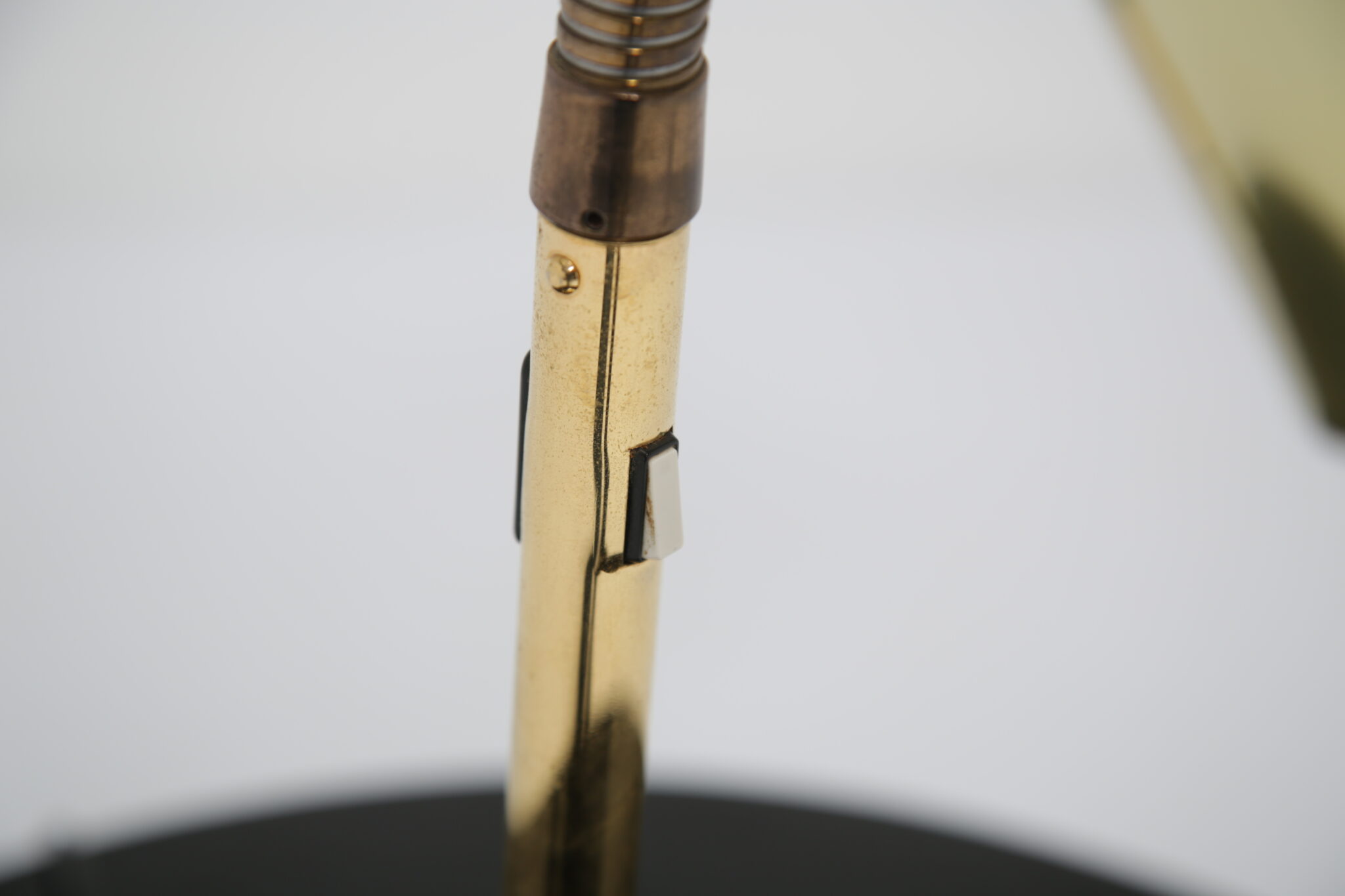 The desk lamp is in overall good condition with some tarnishing occurring on the base of the lamp as highlighted in the photos with a bit of tarnishing on the stem of the light.
