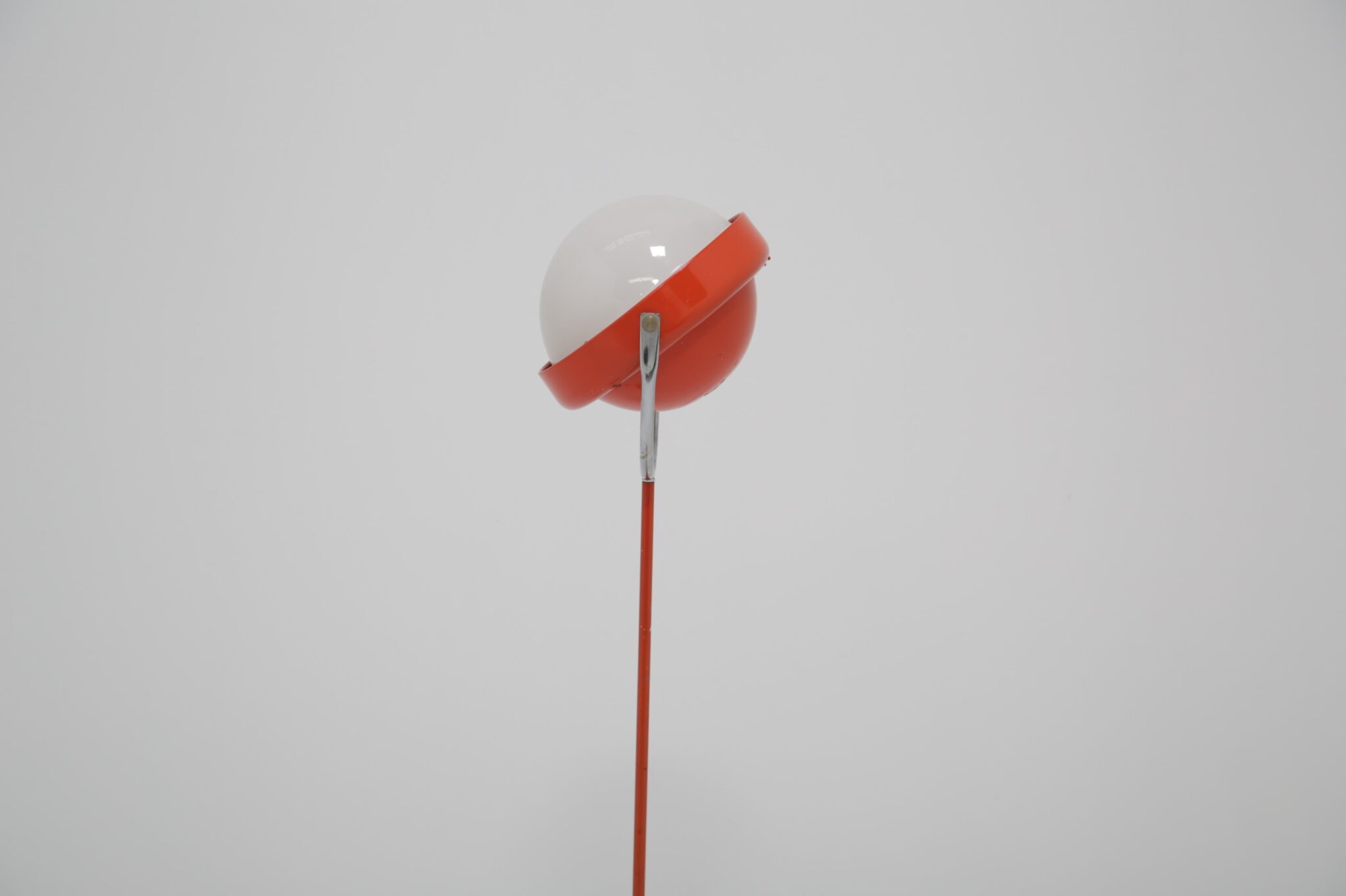 Take a look at this stunning floor lamp from the space age era of the 1960s. Designed by the Swedish designer Uno Dahlen and manufactured by Aneta sometime in the 1960s. Featuring a lacquered metal frame with a plastic shade which can be adjusted up and down depending on your needs.