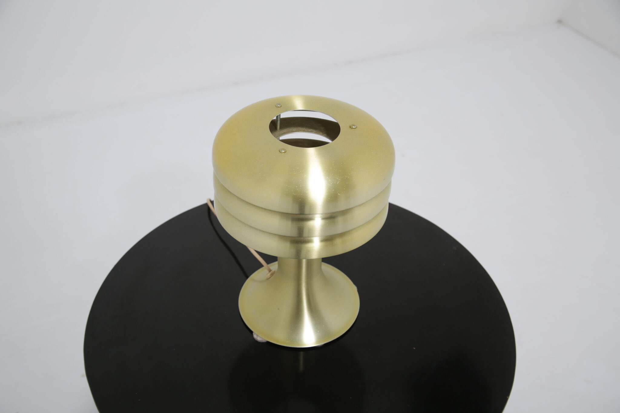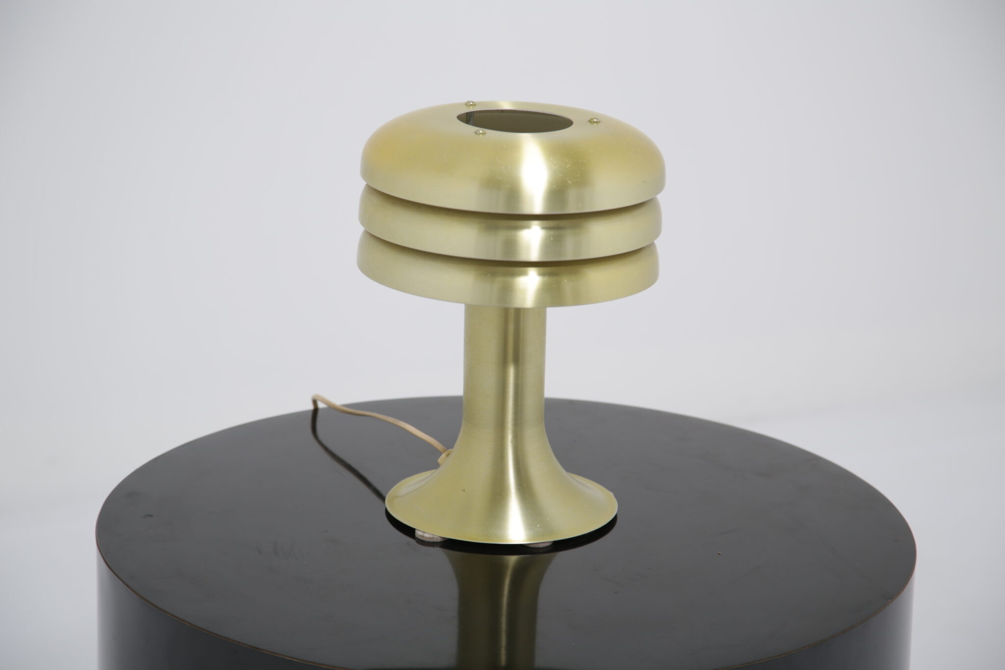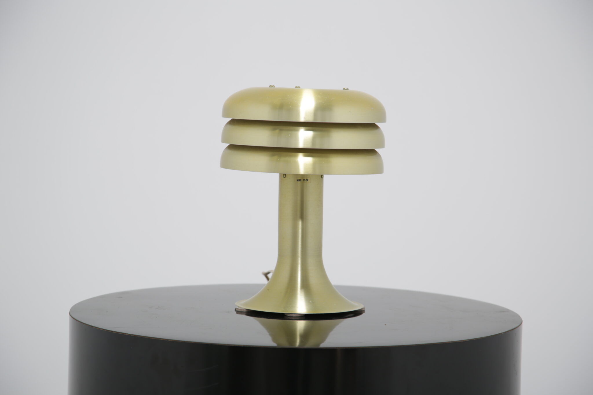 Just added to our collection is this stunning table lamp designed by the renowned Swedish designer Hans-Agne Jakobsson who begun his career as a designer at 18 years old in 1937. This lamp is manufactured in aluminum which has been sprayed gold. The ribbed beehive design on the shade creates a beautiful soft glow when lit up providing a cozy atmosphere. This would be perfect on a side table next to an armchair, sofa or even as a hall or desk lamp.