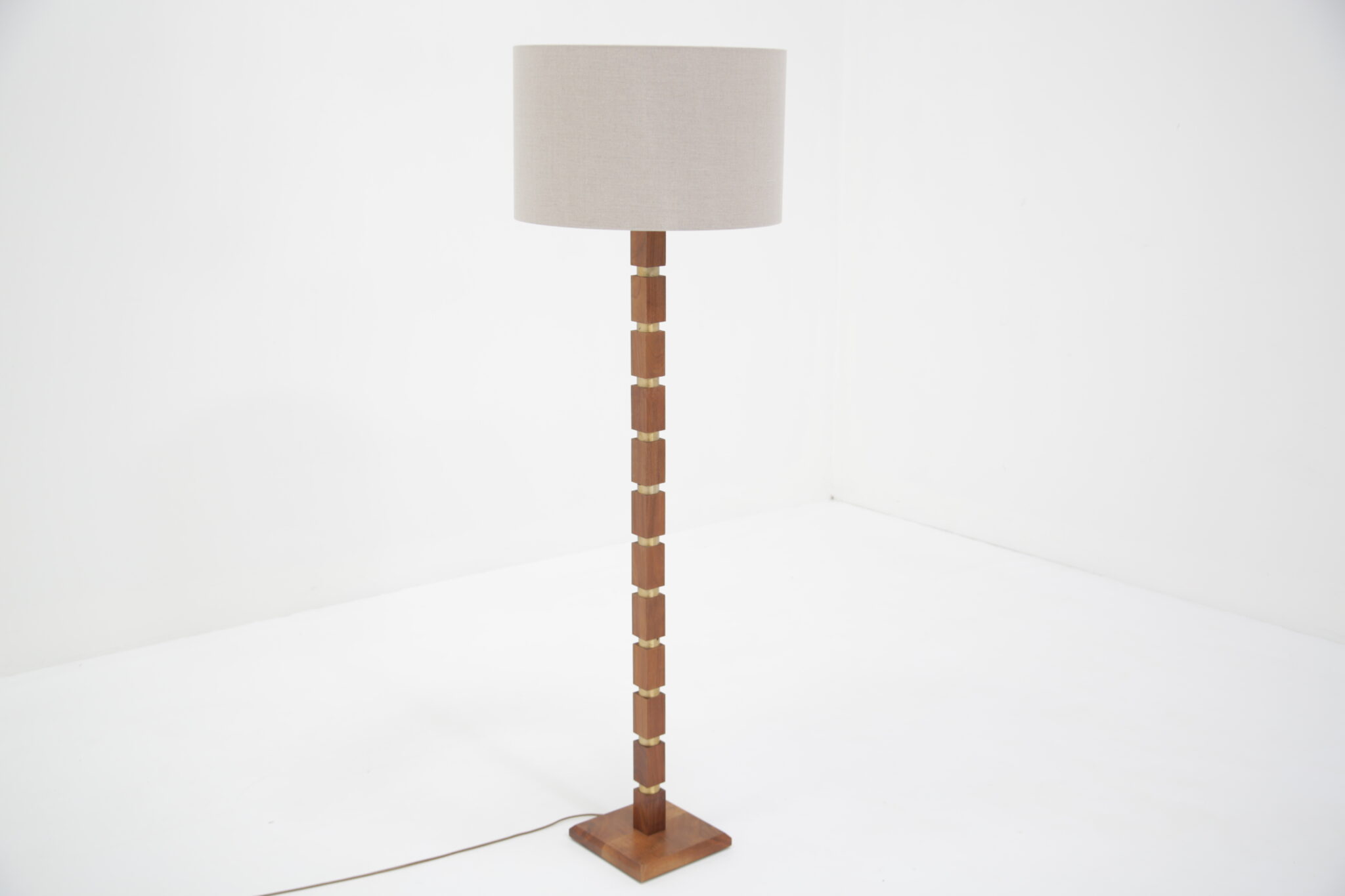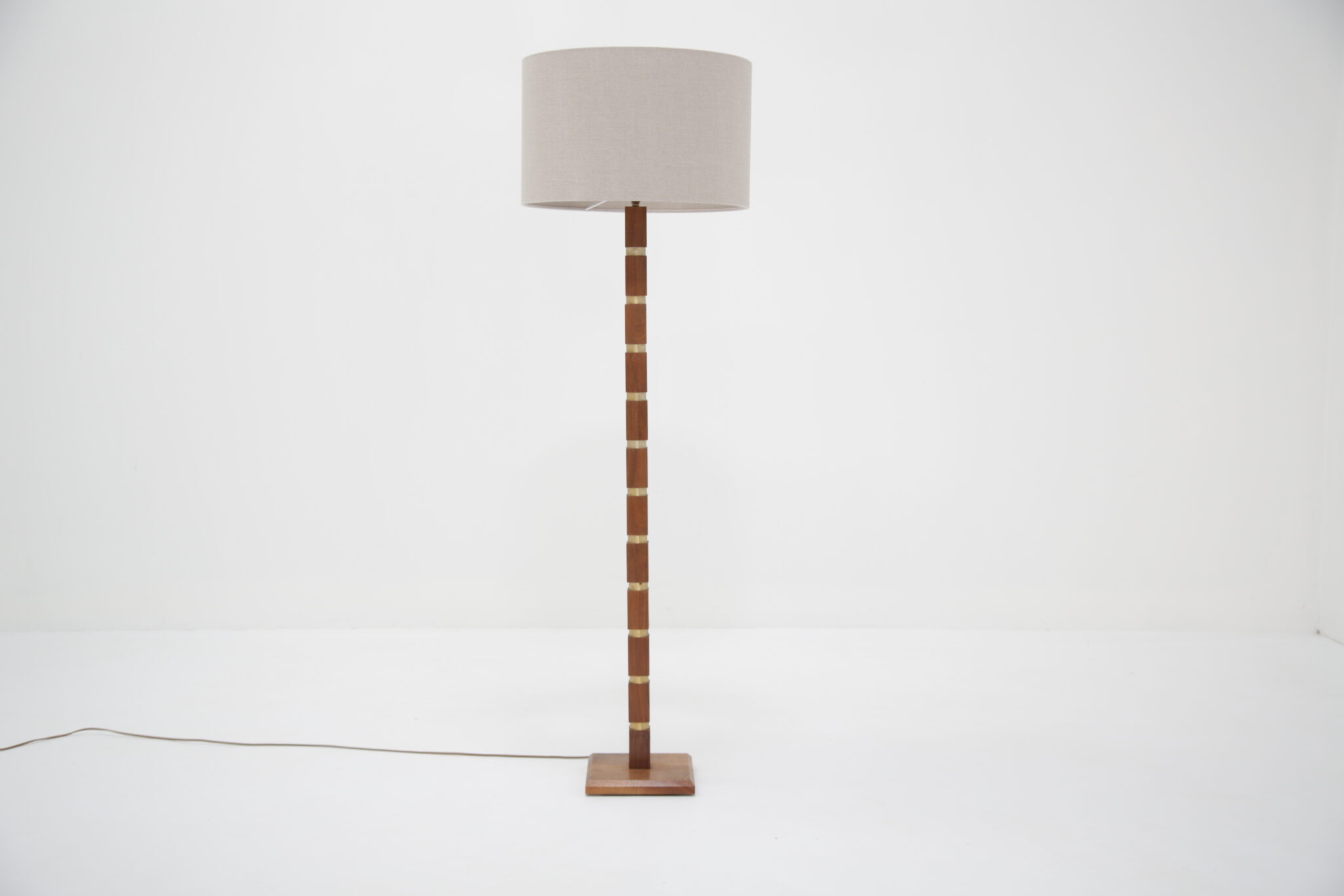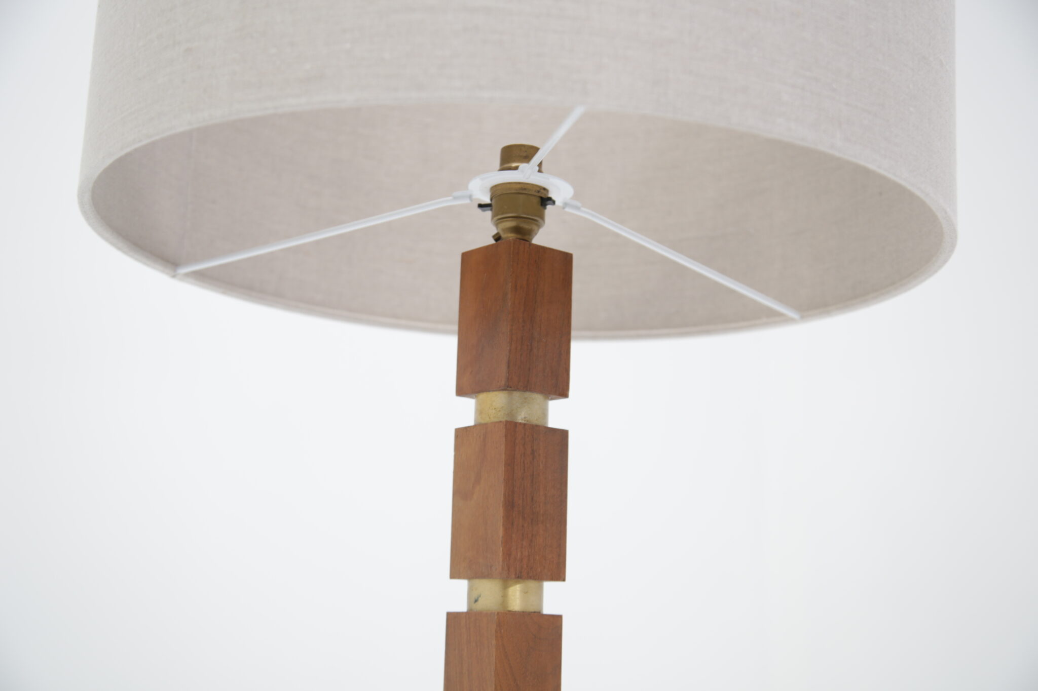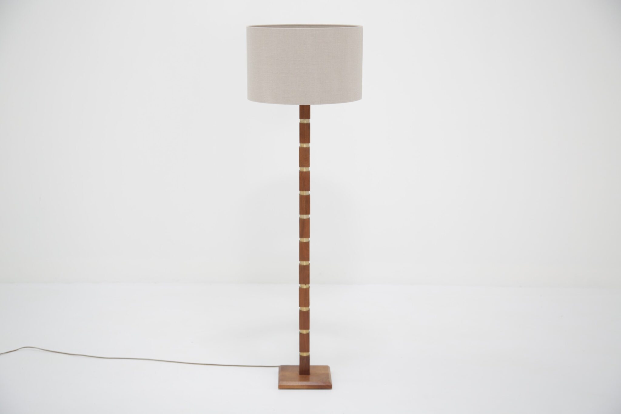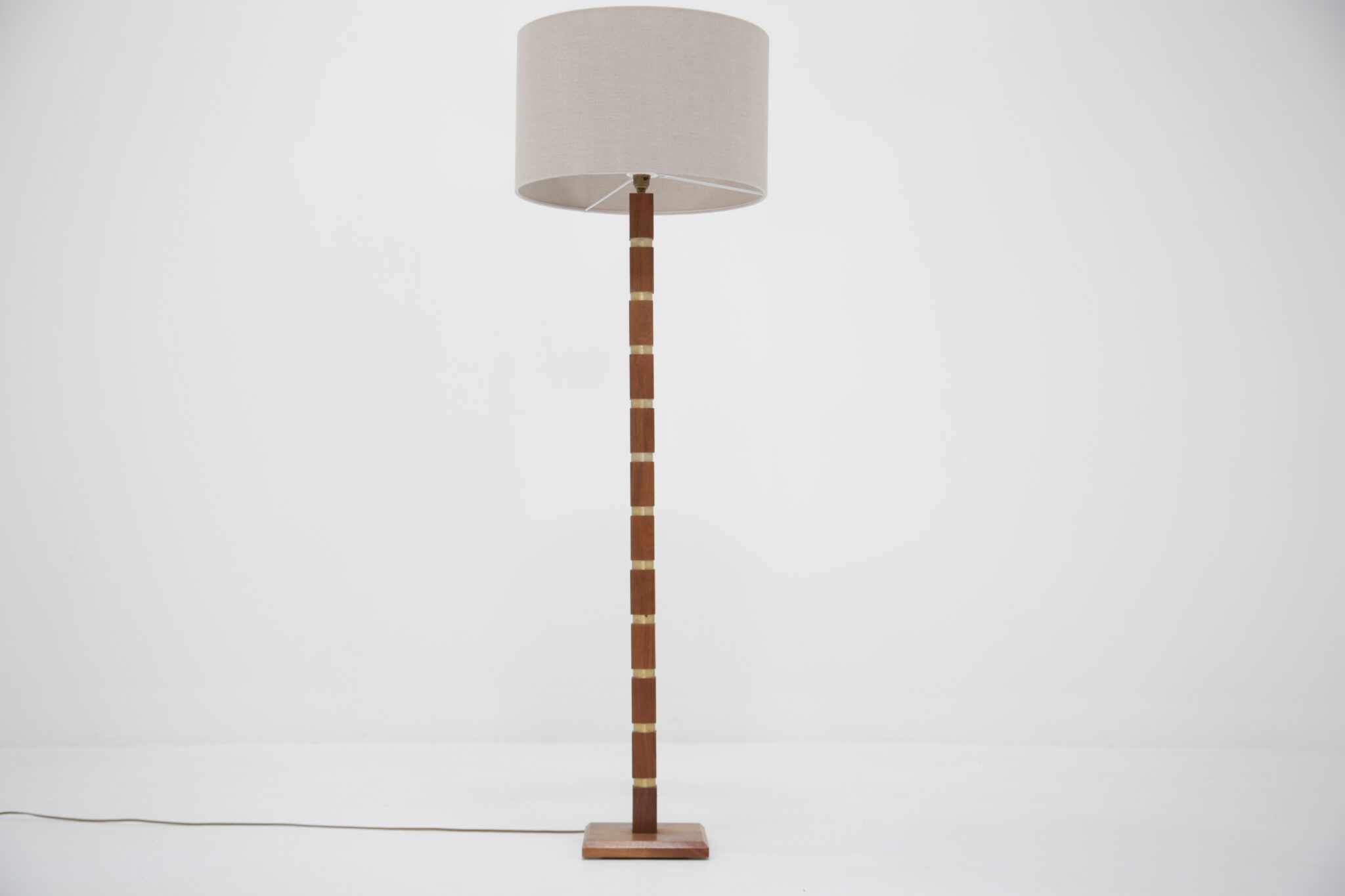 Take a closer look at this exquisite floor lamp, expertly crafted from rich walnut and featuring an elegant brass design. This unique piece combines timeless aesthetics with functional lighting, making it a perfect addition to both modern and traditional interiors. Manufactured in Sweden, designer unfortunately remains unknown. Dated to the 1960s.