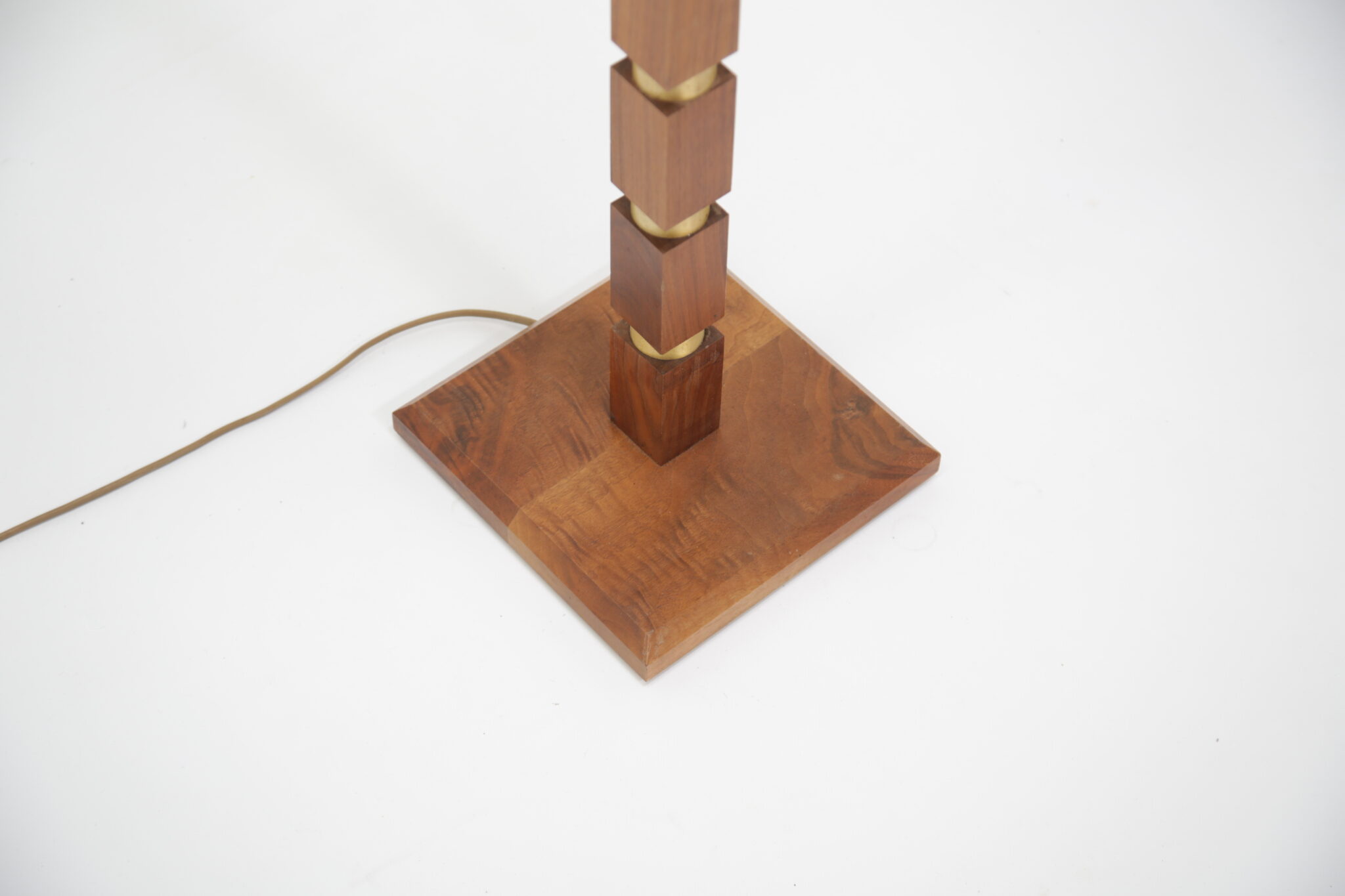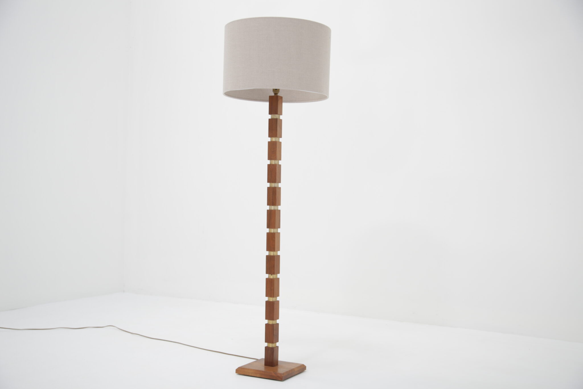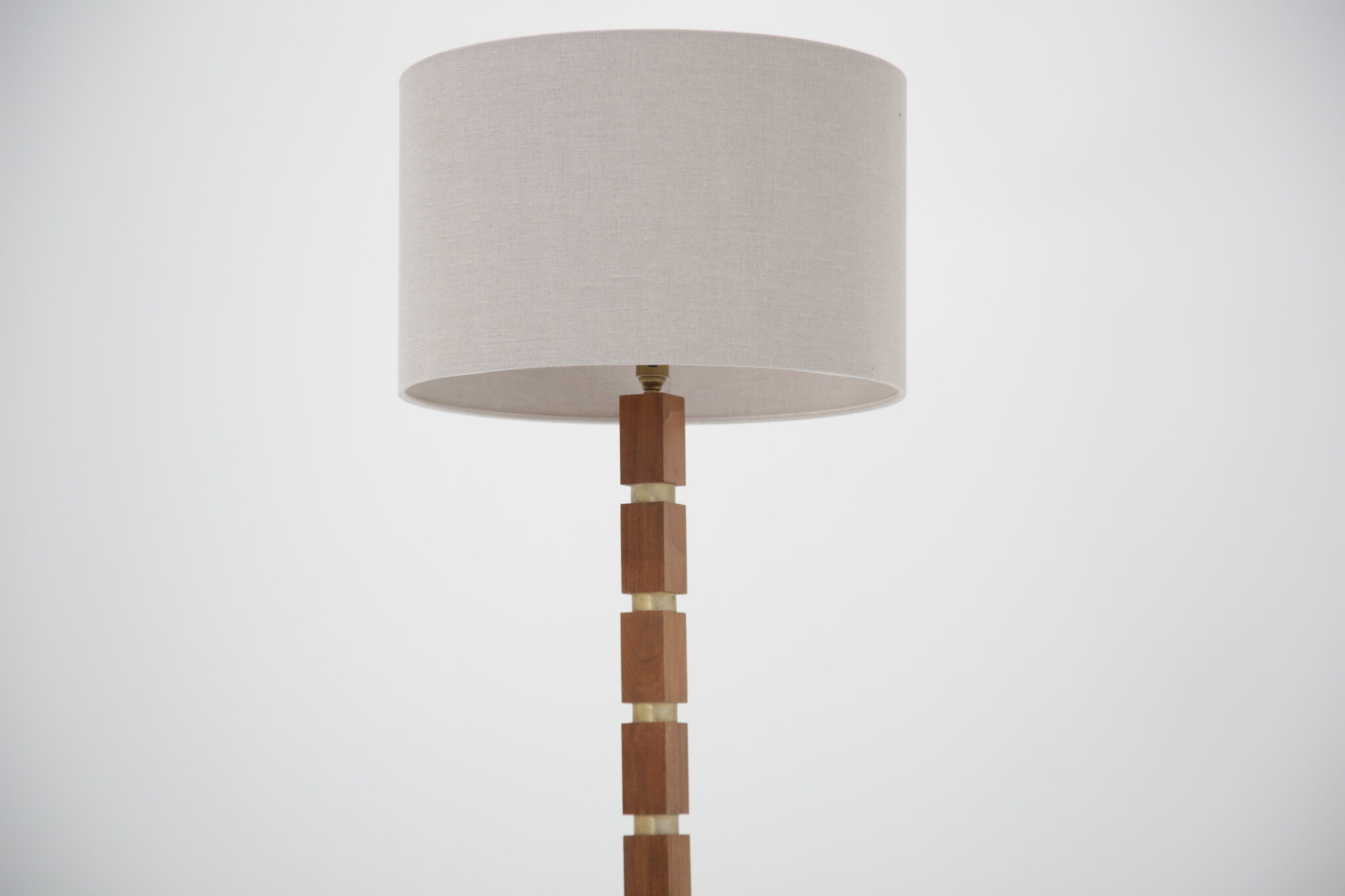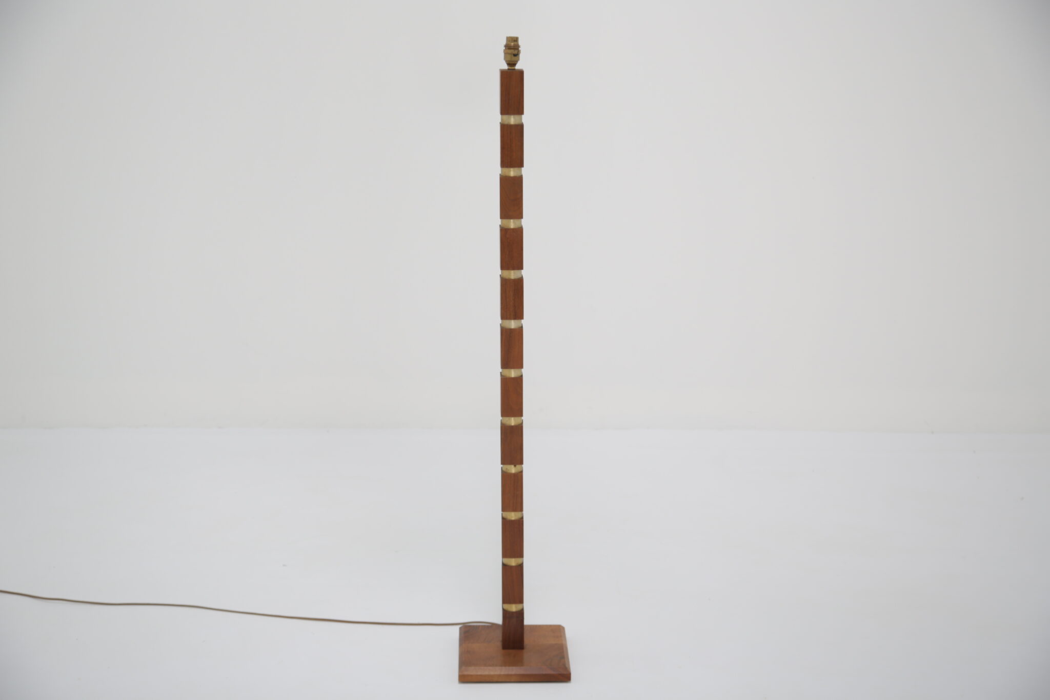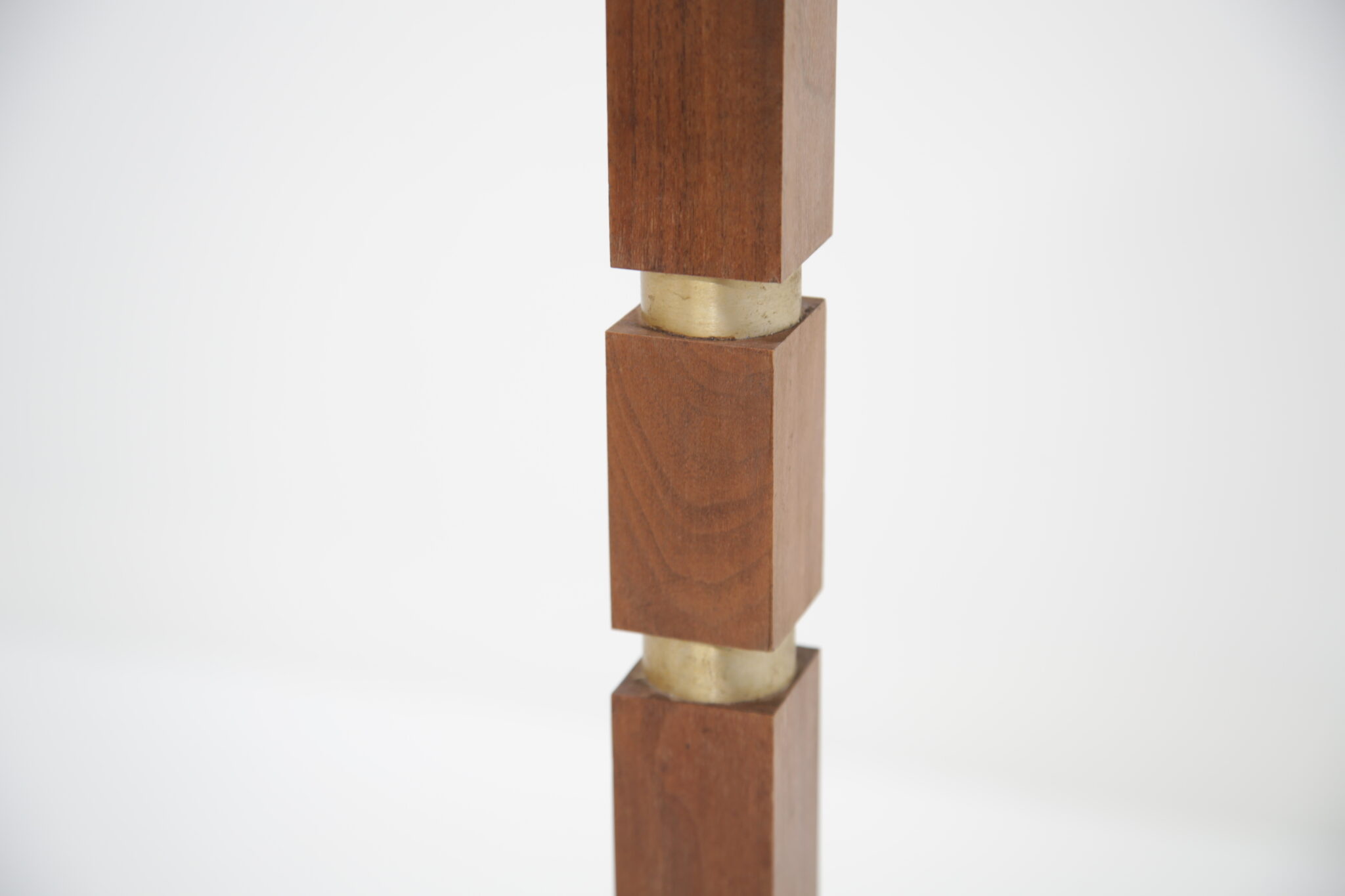Take a closer look at this exquisite floor lamp, expertly crafted from rich walnut and featuring an elegant brass design. This unique piece combines timeless aesthetics with functional lighting, making it a perfect addition to both modern and traditional interiors. Manufactured in Sweden, designer unfortunately remains unknown. Dated to the 1960s.