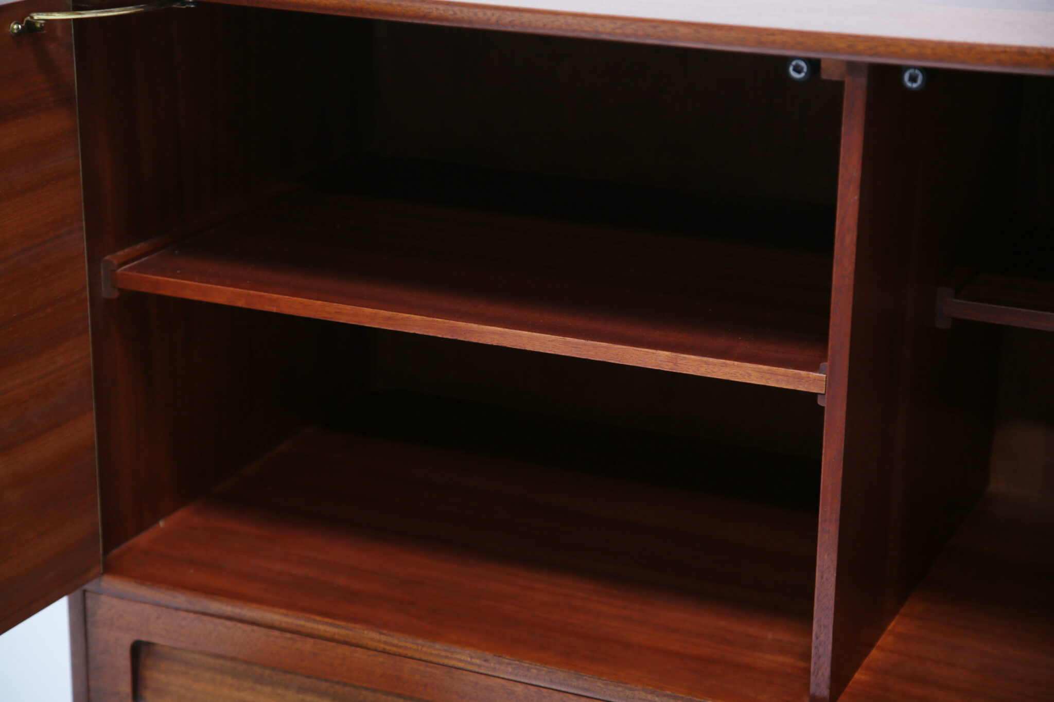 Some might describe this as a cocktail bar cabinet, others as a sideboard. This is a unit that will function as both. Featuring four cabinets and two pull out drawers, this unit offers plenty of space for storing anything from crockery, spirits, glassware to boardgames and much more. The unit has been expertly restored by our talented in-house restoration team and the unit is in excellent condition, we have brought this back to it’s former glory.
